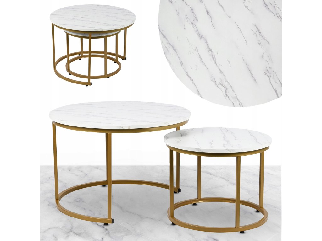 2 db-os dohányzóasztal szett fehér márványutánzattal és arany lábakkal (70 cm és 50 cm)