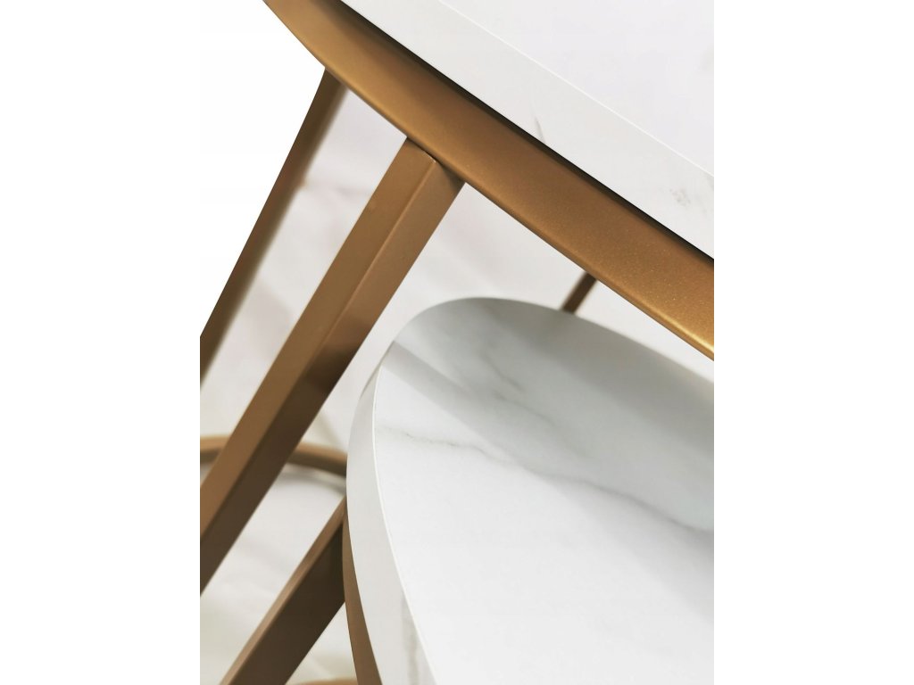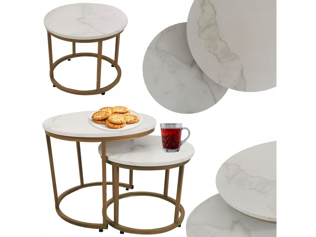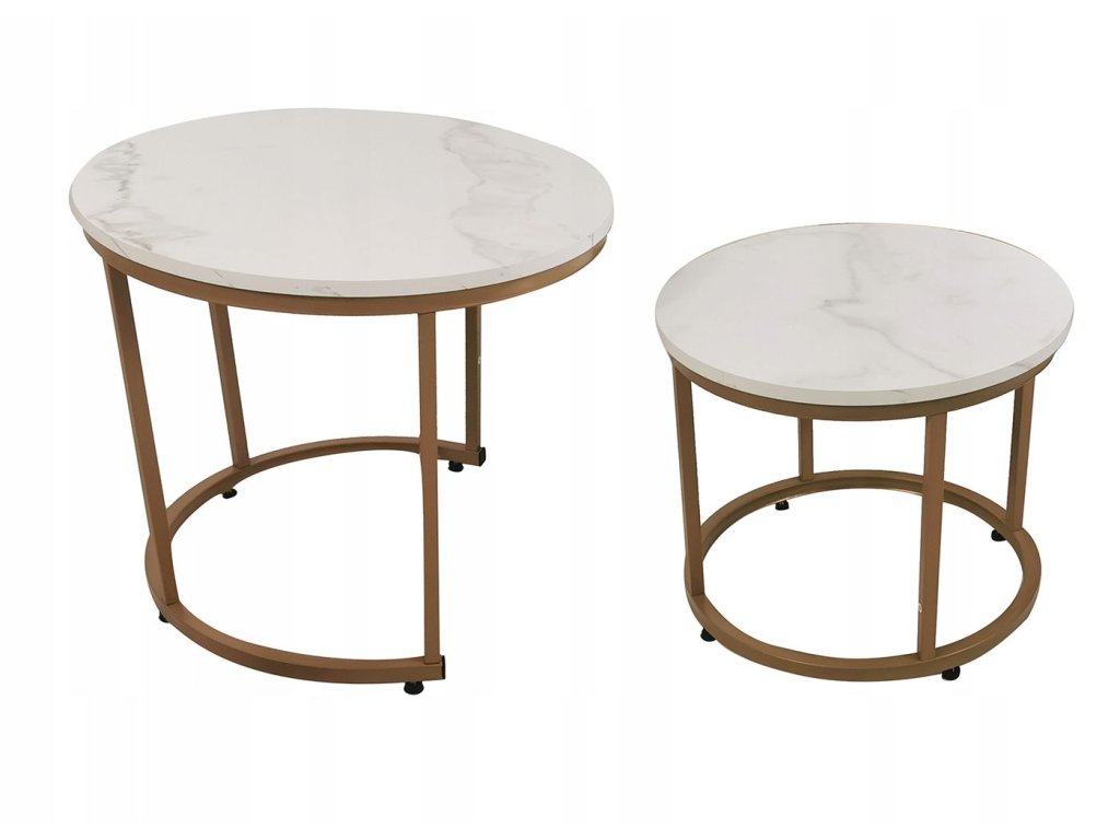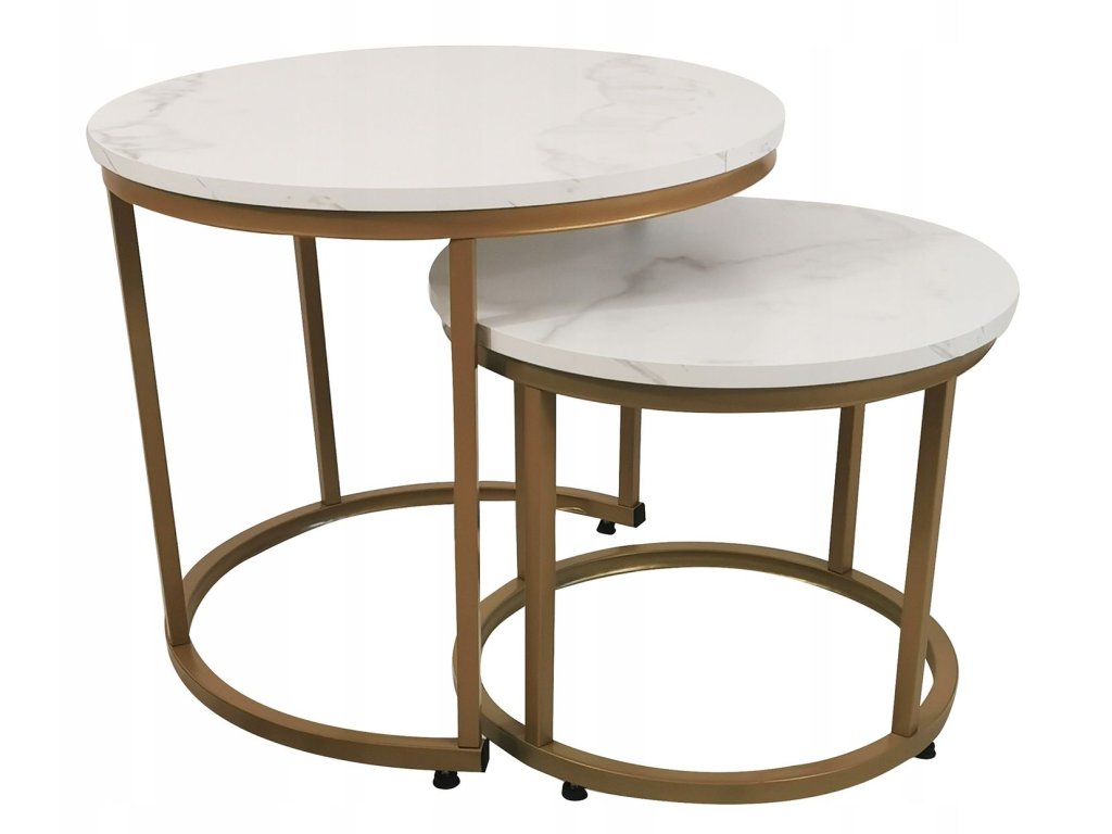 2 db-os dohányzóasztal szett - fehér márvány / arany lábak