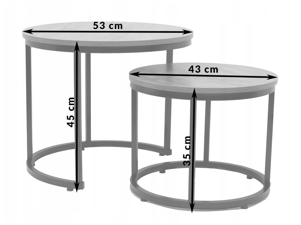 - A kisebb asztal méretei: 43 x 35 cm (átmérő x magasság)