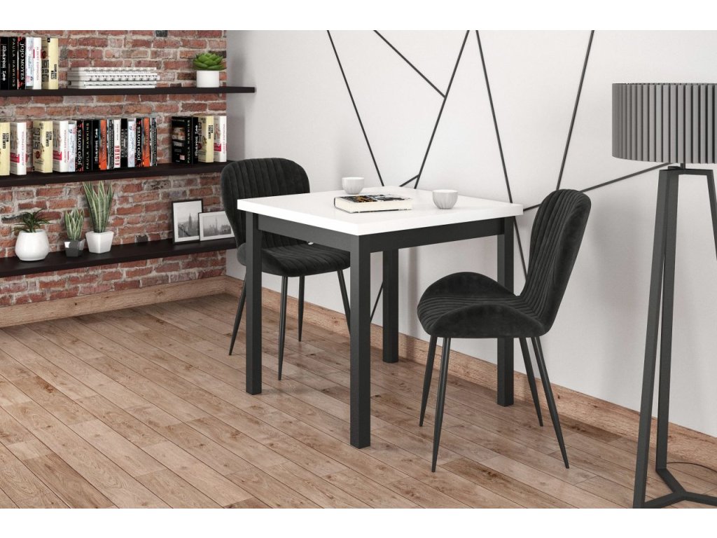 Ez a modern étkezőasztal praktikus , 80 × 80 cm -es négyzet alakú formátumában ideális választás konyhába, étkezőbe vagy kisebb helyiségekbe, ahol minden centiméter számít. A hófehér asztallap és a fekete lábak kombinációja elegáns kontrasztot teremt, így az asztal stílusos, időtlen és könnyen illeszthető bármilyen enteriőrbe.