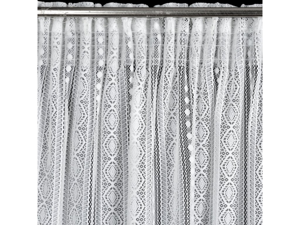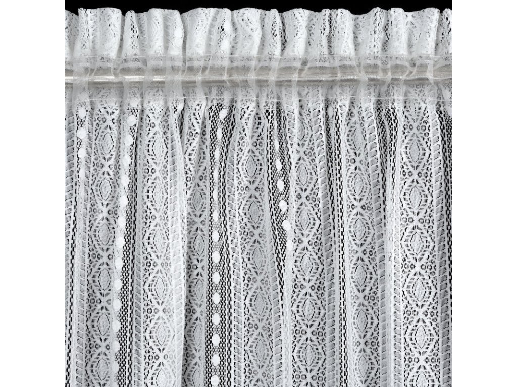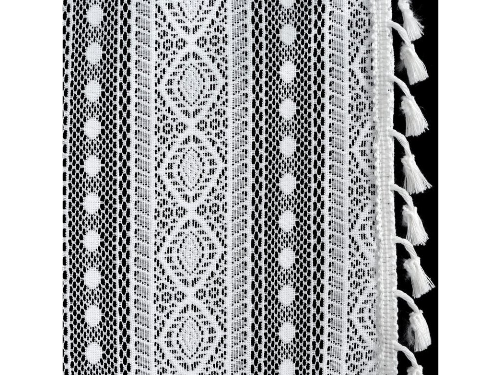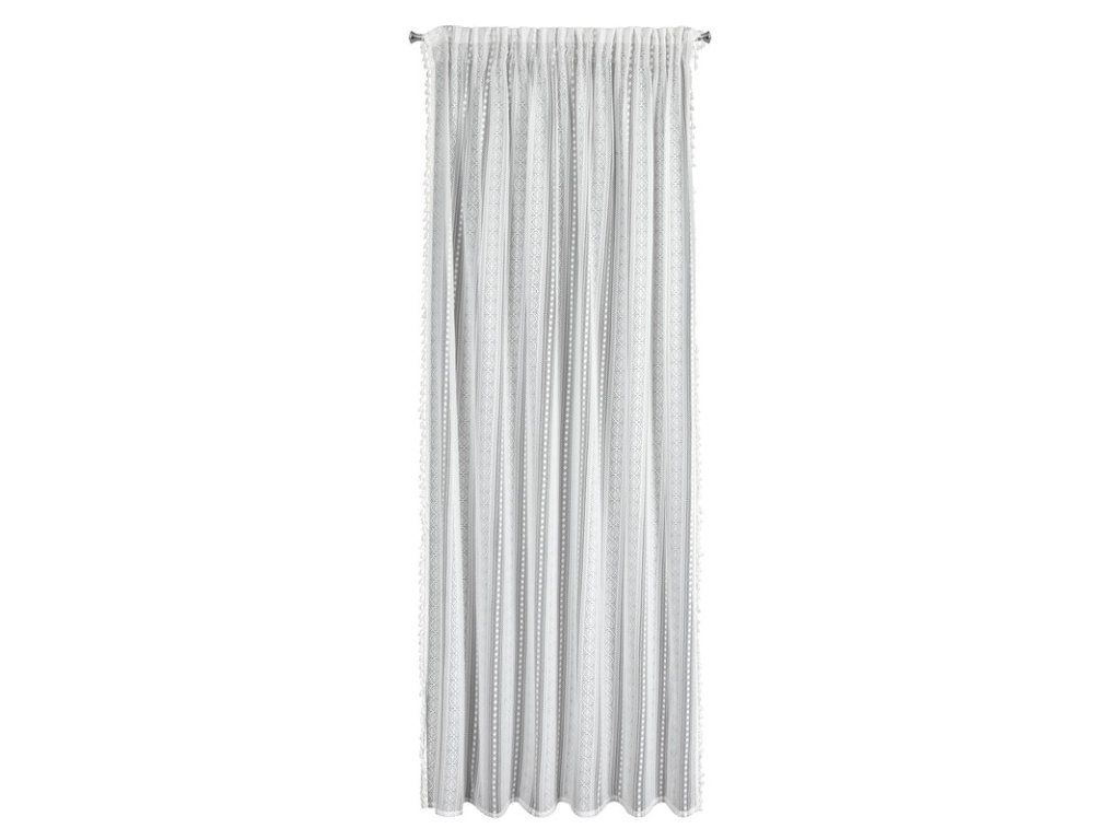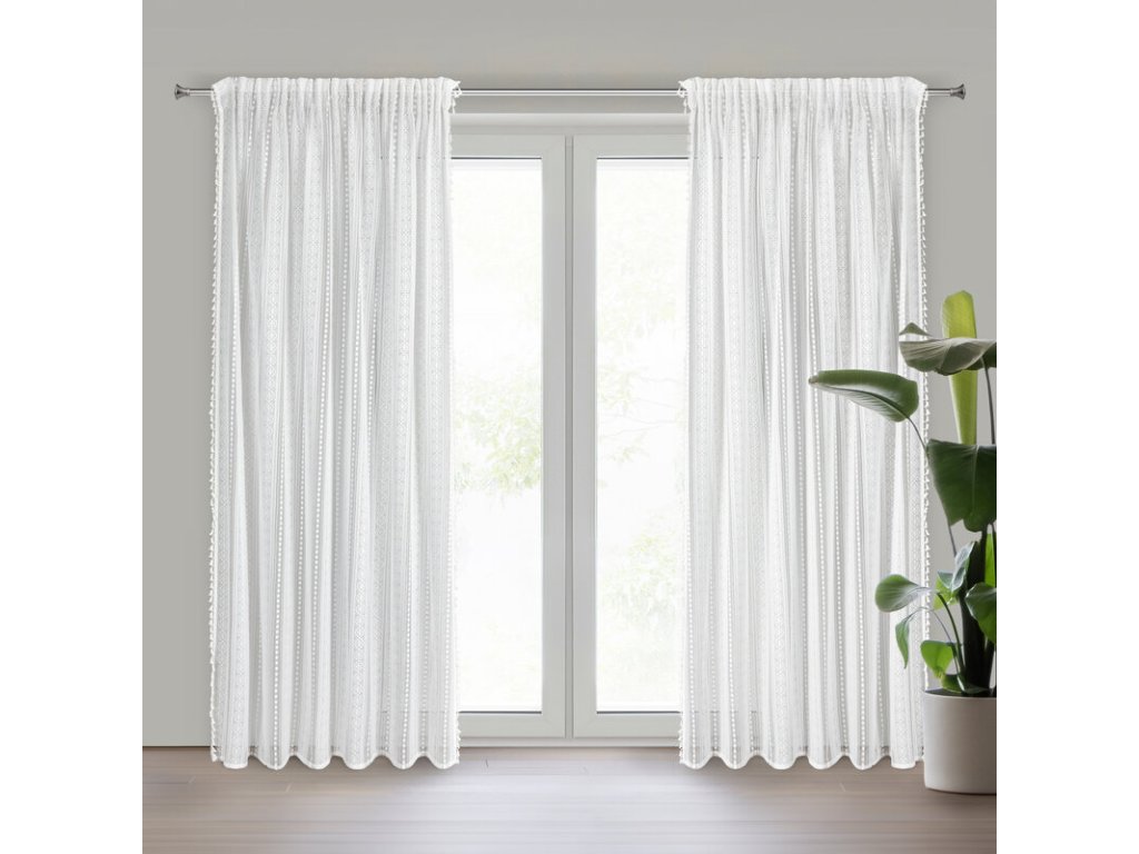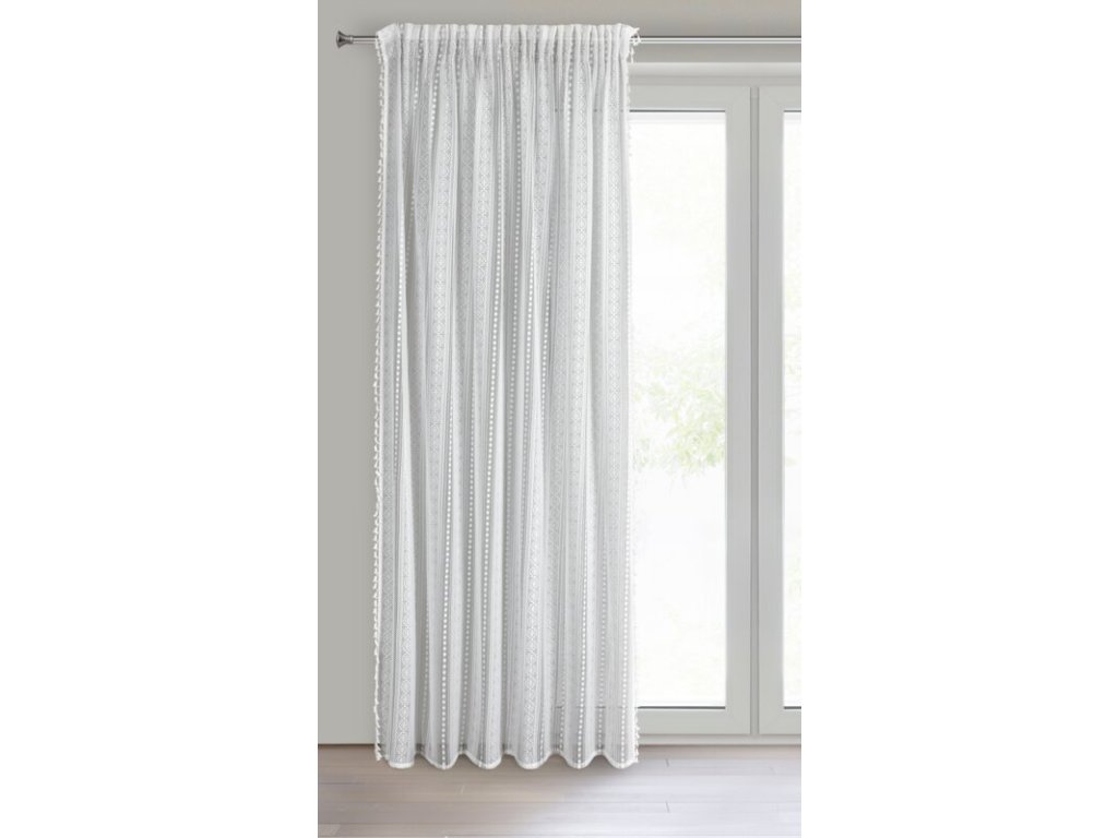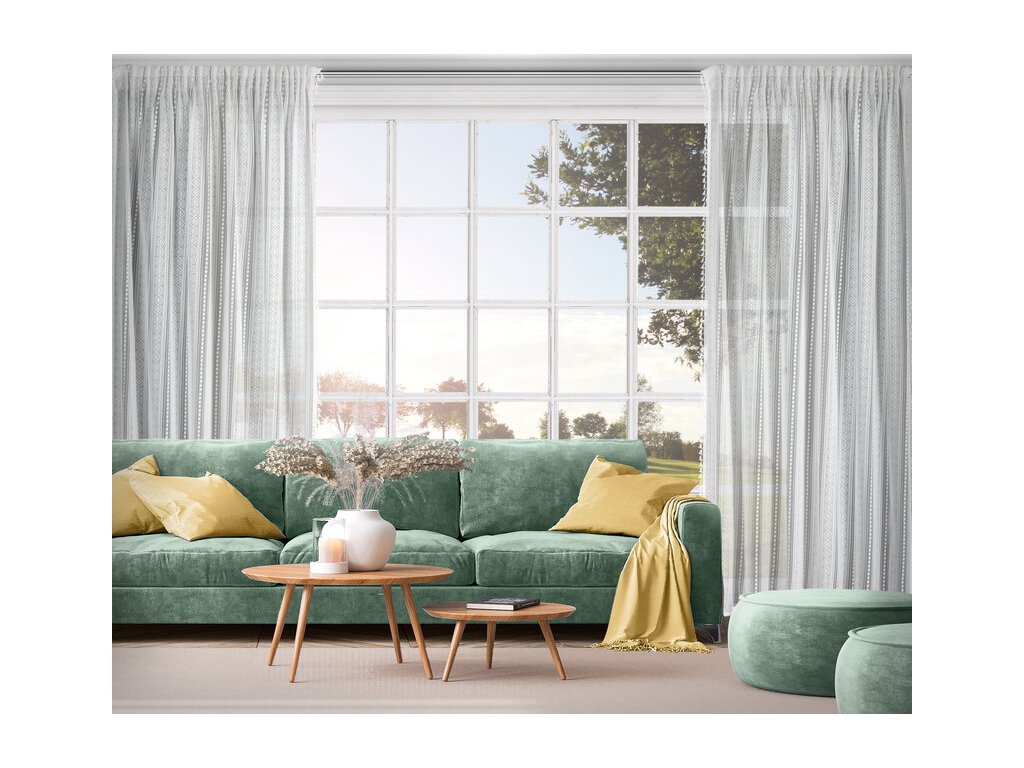 A szövet oldalának kis gubókkal való díszítése dinamikus megjelenést és könnyedséget kölcsönöz a függönynek.