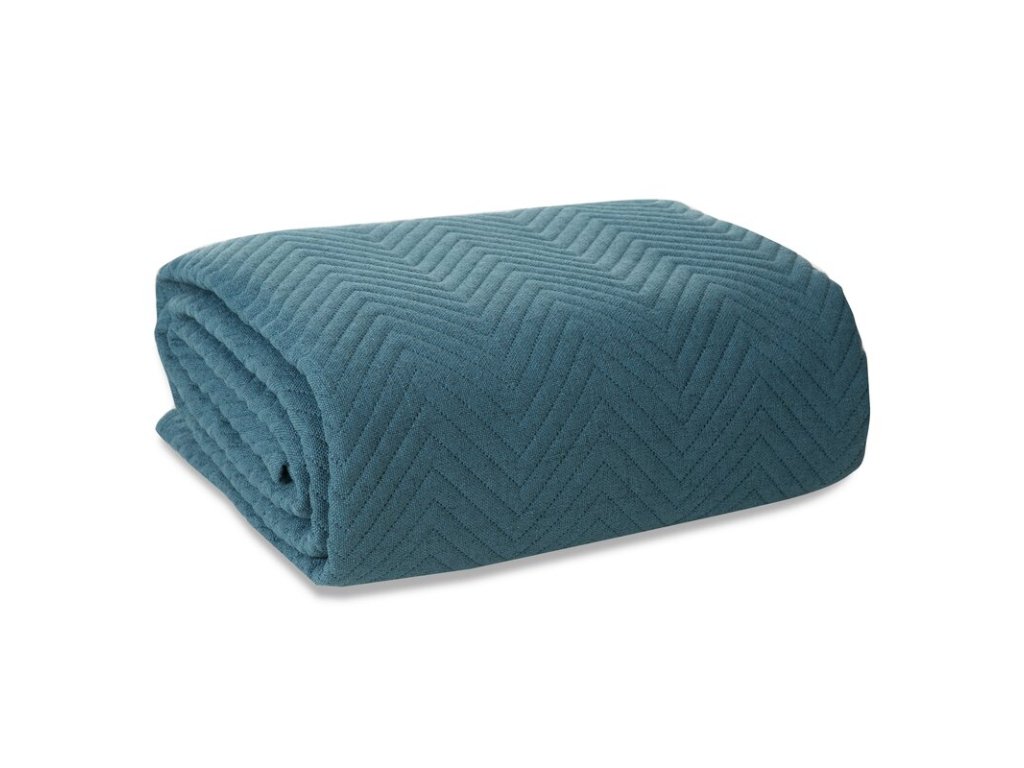 Egy stílusos, halszálkamintás steppelt ágytakaró modern hangulatot kölcsönöz a hálószoba belsejének.