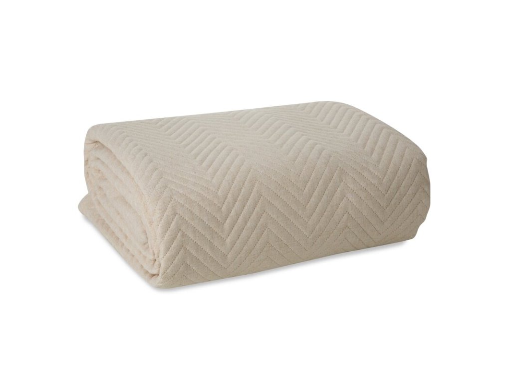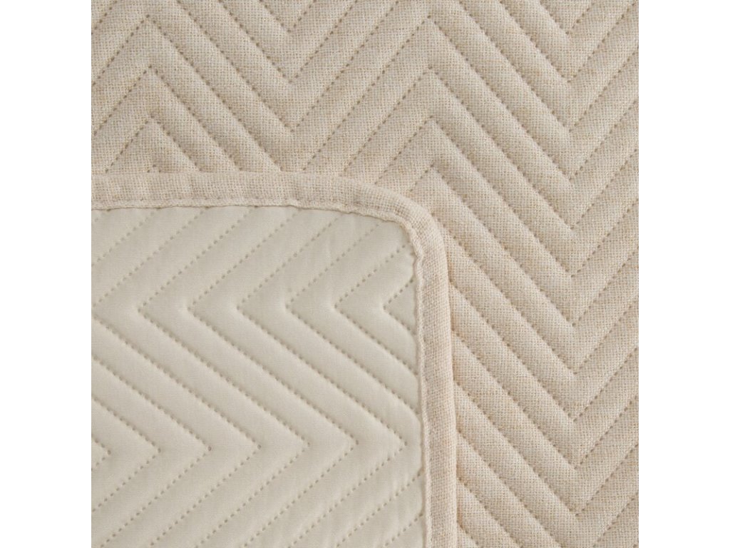 Egy stílusos, halszálkamintás steppelt ágytakaró modern hangulatot kölcsönöz a hálószoba belsejének.