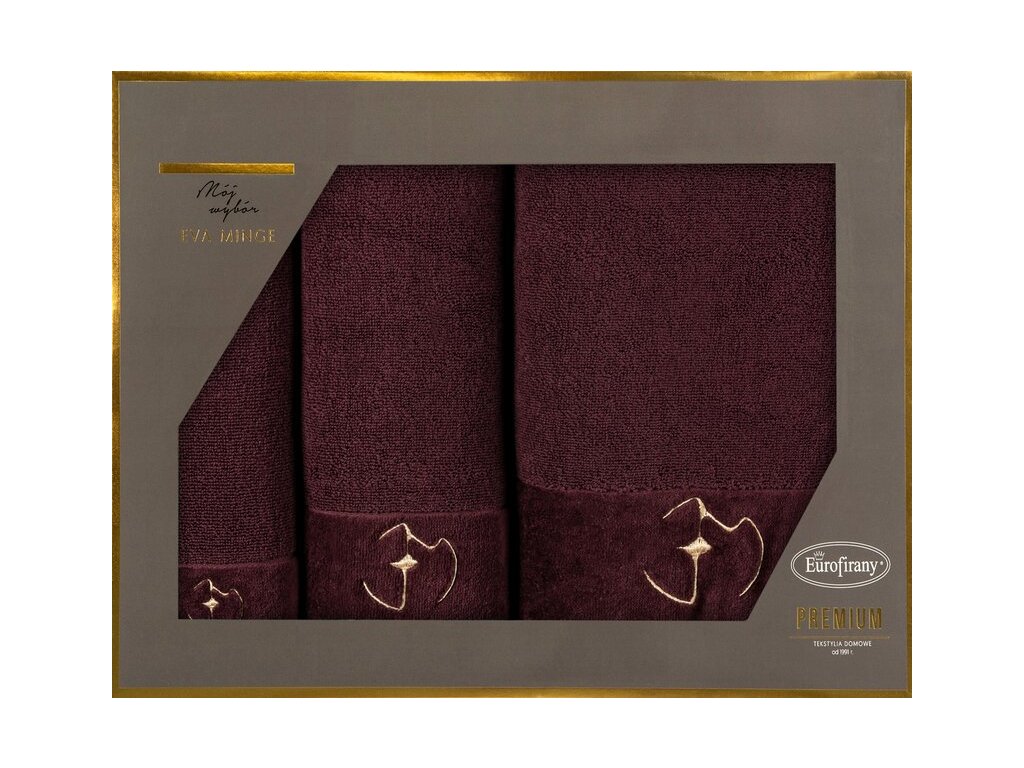 Ajándék szett 3 db GAJA Eva Minge törölköző bordó színben