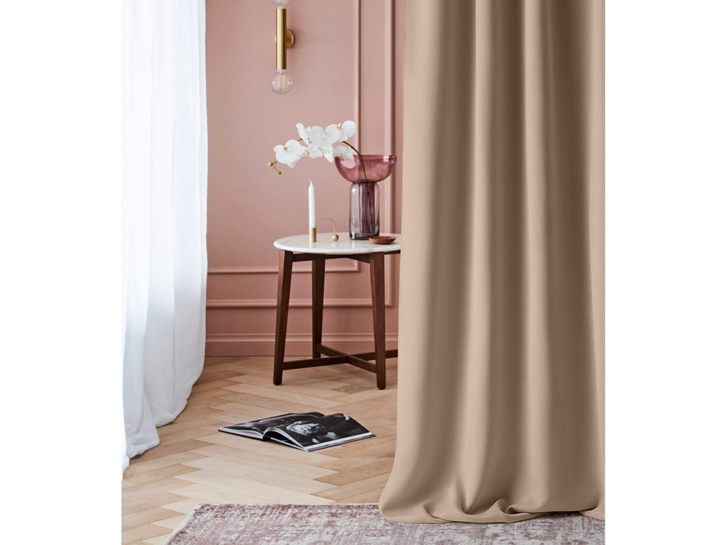 Az elegáns, matt, tökéletes, árnyékoló függöny az új LAUREL kollekcióból tökéletesen védi a belső teret a napfénytől, és egyben gyönyörű dekorációt hoz létre a belső térben.