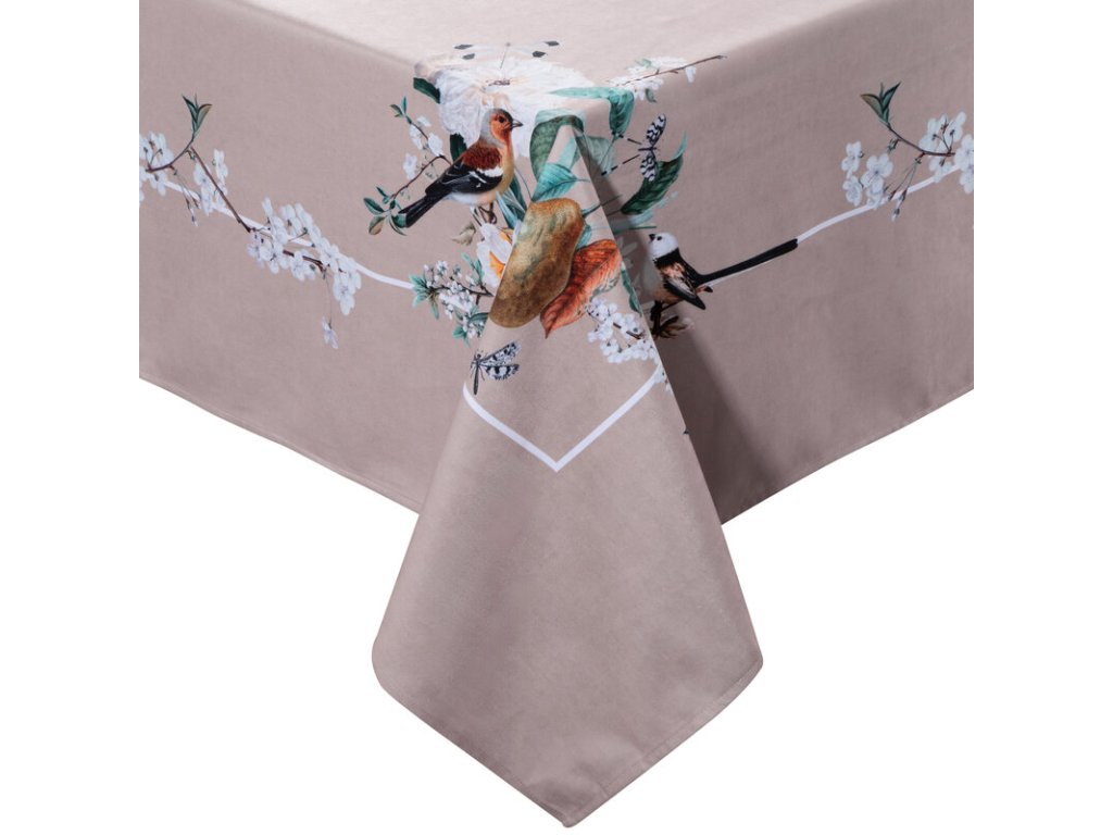 Egy bézs színű, növényi mintás terítő ideális választás a természet és a finom részletek szerelmeseinek.