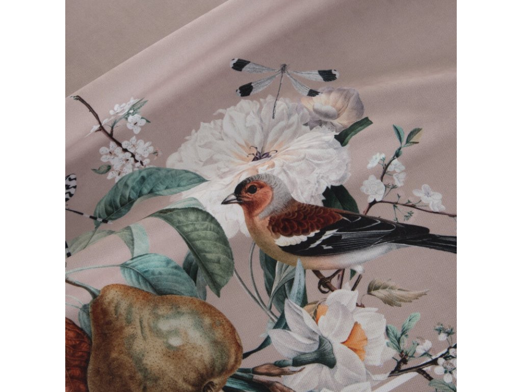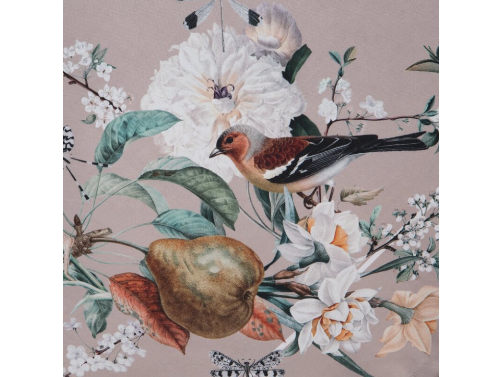 A minta virágzó virágokat, kolibrit, szitakötőt és körtét ábrázol, bájos és kellemes hangulatot kölcsönözve a belső térnek.