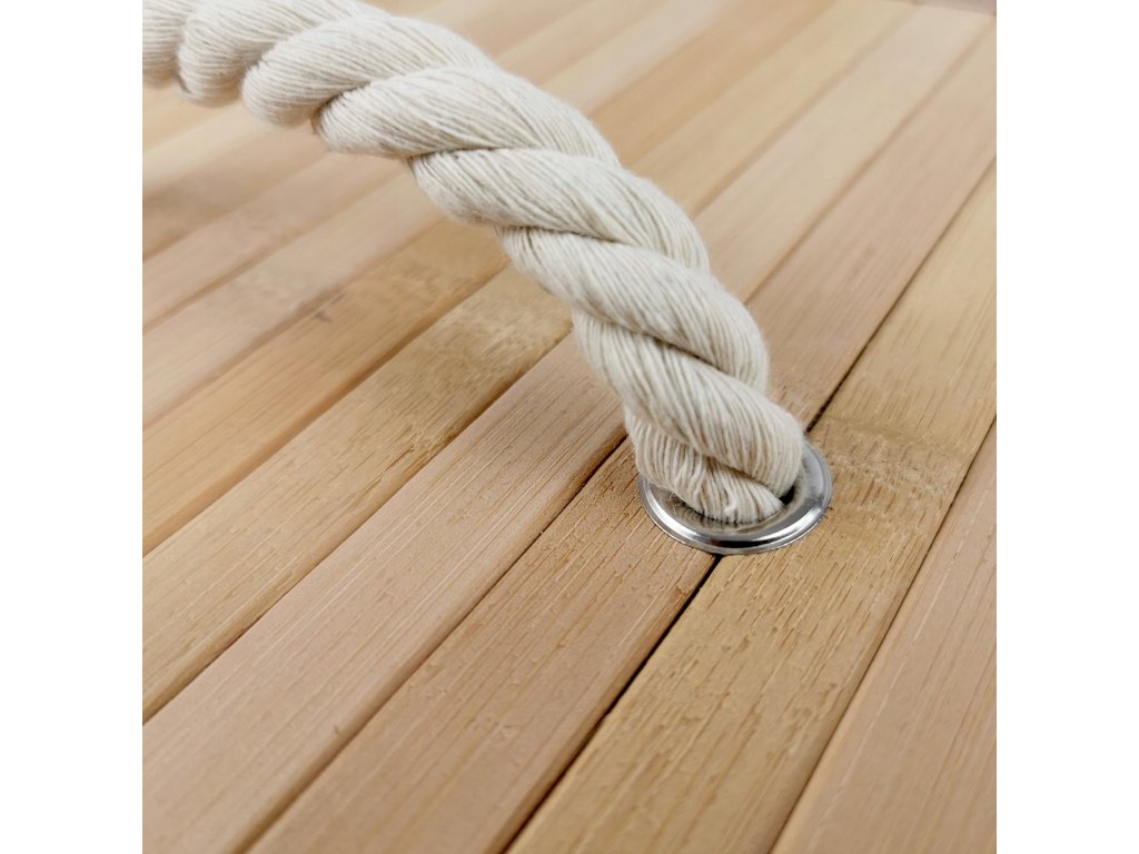 Ez a prémium bambuszkosár robusztus konstrukciójával és kivételes kidolgozásával tűnik ki, ami hosszú távú tartósságot garantál.
