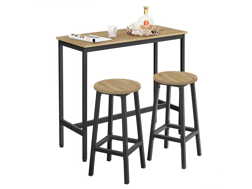 Bárasztal + 2 db bárszék - Tölgyfa artisan - LBT219B88