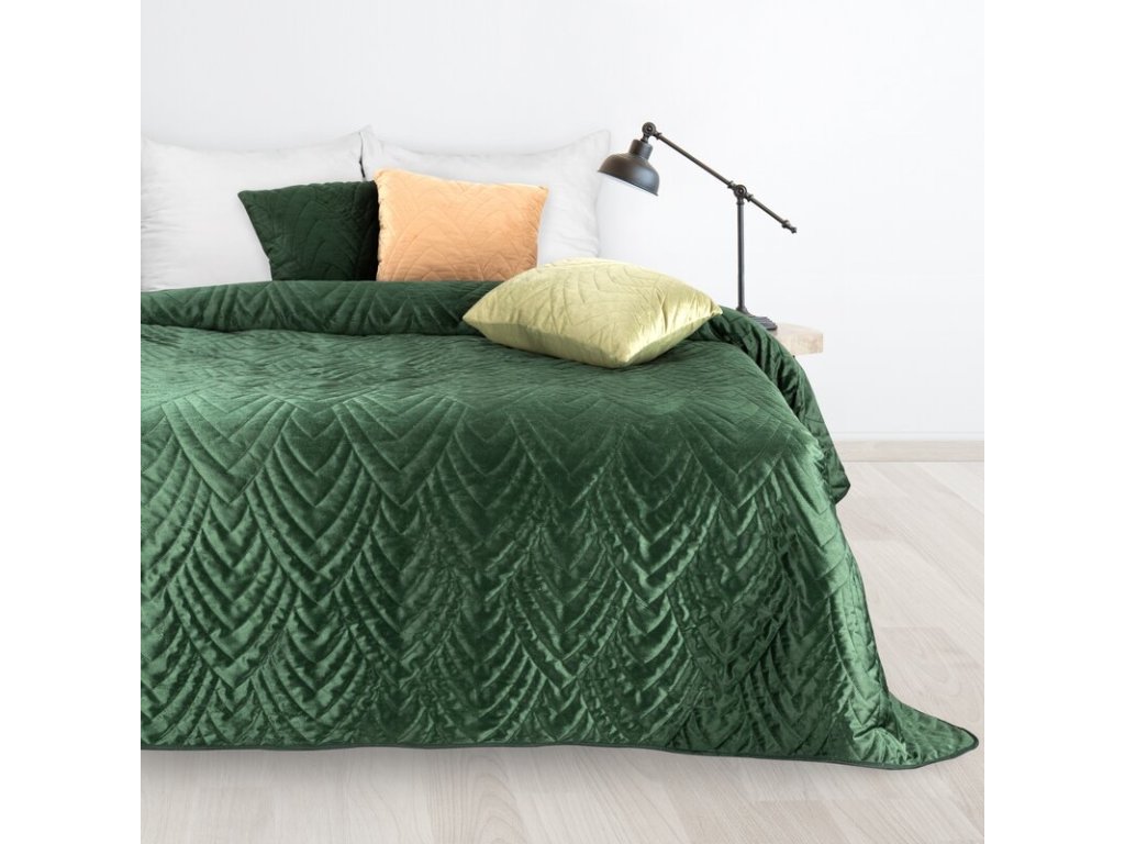 Bársony ágytakaró LUIZ 6 sötétzöld színben