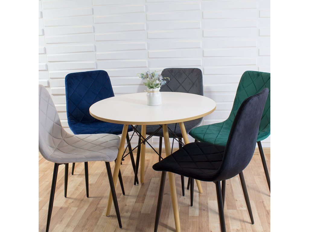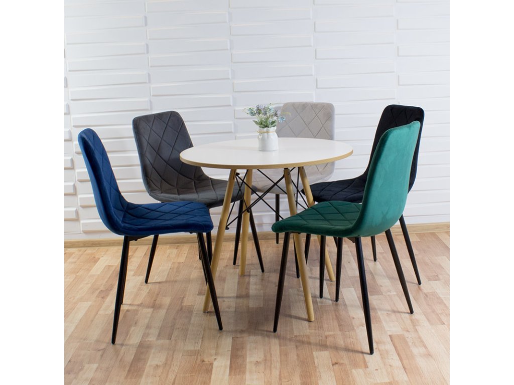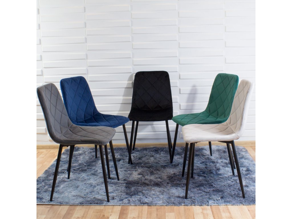 A kellemes, bársonyos velúr anyag egyedi kombinációja fém lábakkal. Nagyon kényelmes, stabil szék profilos háttámlával.