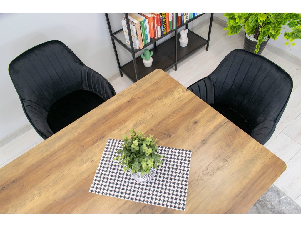 Ennek a széknek minden részletét átgondoltan tervezték, a maximális kényelem és a hosszú távú tartósság hangsúlyozásával, így ideális választás a mindennapi használatra. Letisztult vonalai és bársonyos kivitele egy csipetnyi luxust, míg a fekete szín univerzális eleganciát ad, amely könnyen kombinálható különböző belső stílusokkal.