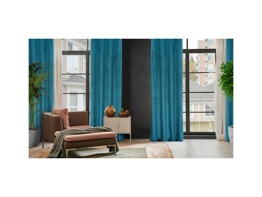 Kölcsönözzön luxust otthonának egy finom bársony anyagból készült függönnyel. A sima anyag elegáns, kellemes tapintású, és a dombornyomott hullámos mintának köszönhetően jellegzetes dizájnelemmé válik, amely első pillantásra magára vonzza a tekintetet.