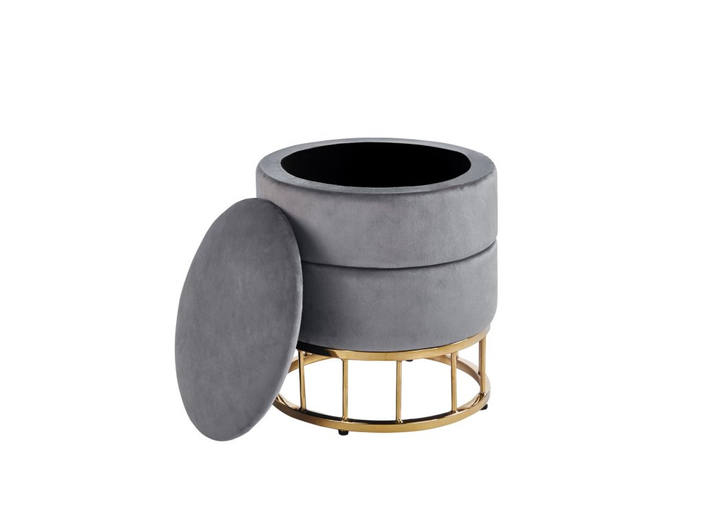 A praktikus tárolóhely lehetővé teszi takarók, párnák, magazinok vagy apró tárgyak rendezett tárolását, ami segít rendben tartani otthonát. Kerek formája és kompakt méretei ideális választássá teszik a zsámolyt még kisebb helyiségekbe is, ahol kényelmes ülőhelyként, lábtartóként vagy dizájnkiegészítőként is szolgálhat.