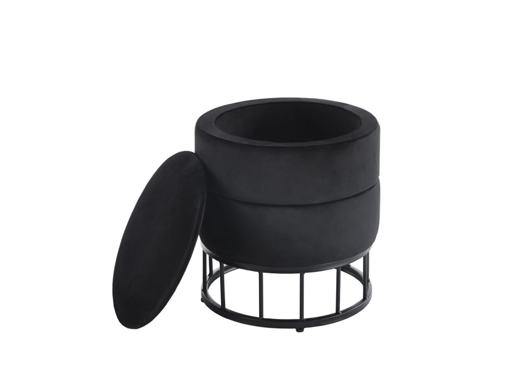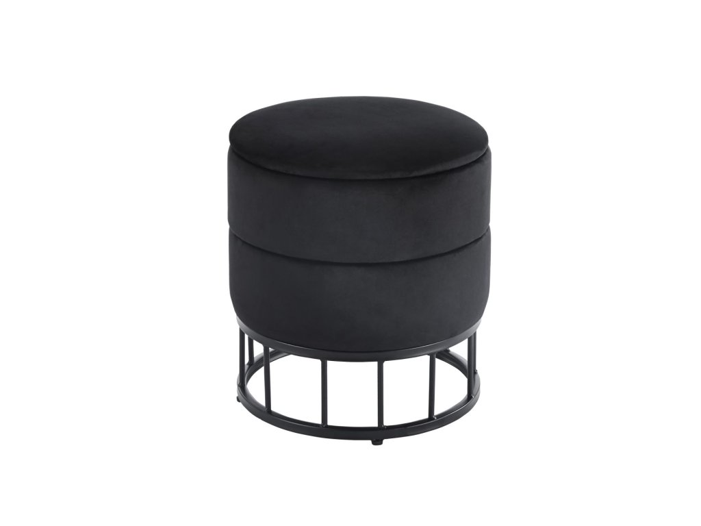 Bársony zsámoly tárolóval AUREA - fekete