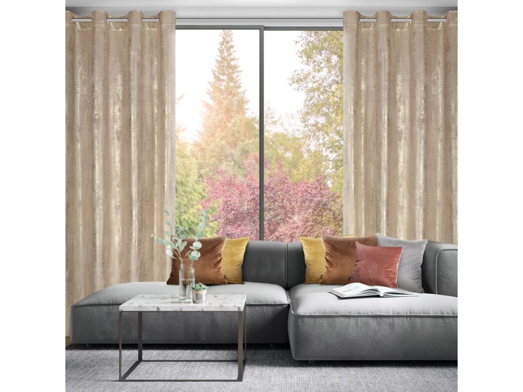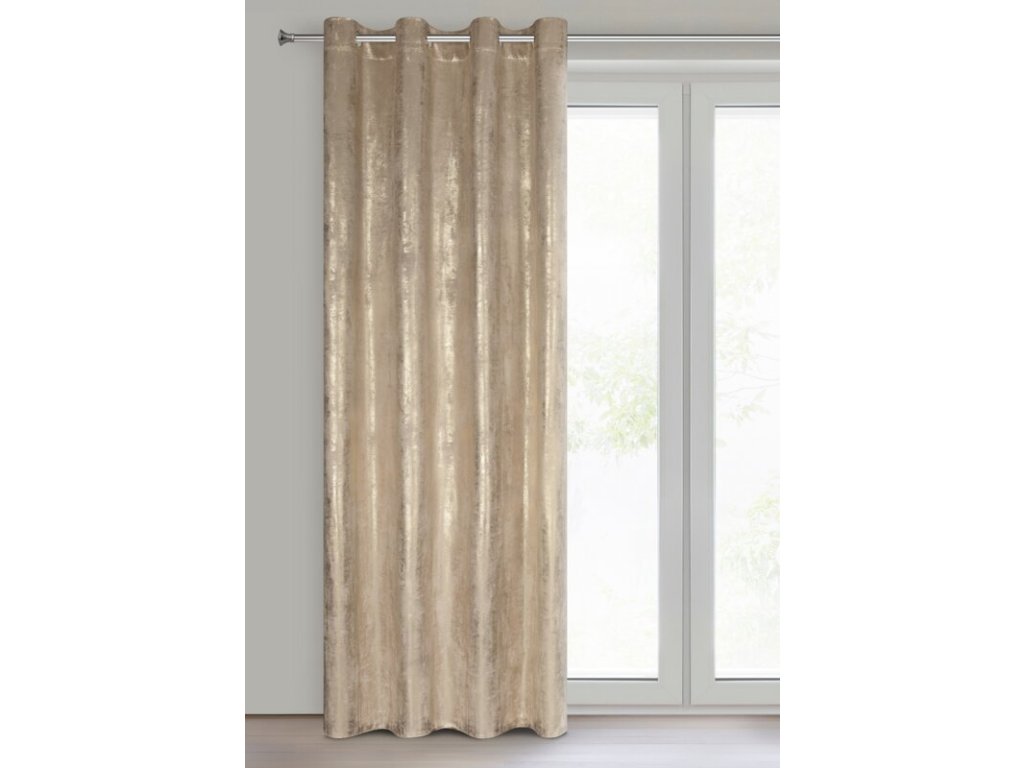 Bársonyfüggöny karikás RENIA fényes mintával - bézs