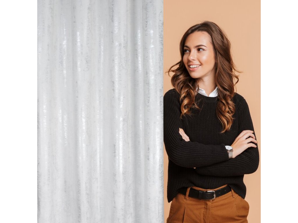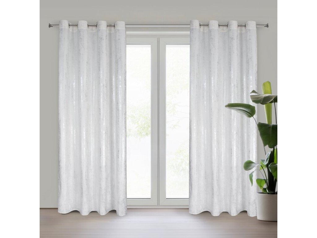 Bársonyfüggöny karikás RENIA fényes mintával - fehér