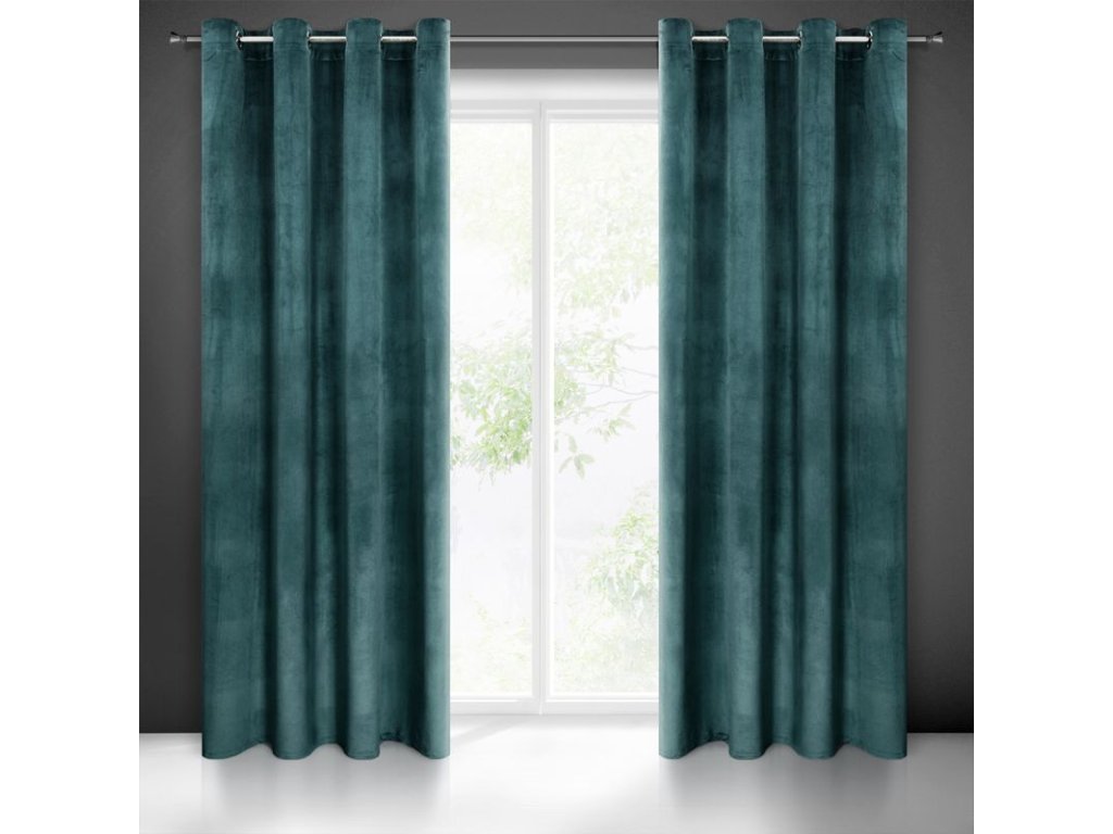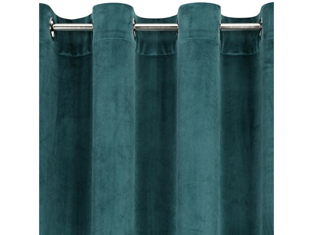 A bársonyos textúrájú puha anyagnak köszönhetően a függöny fenomenálisan visszaveri a fényt, és felakasztva is remekül néz ki.