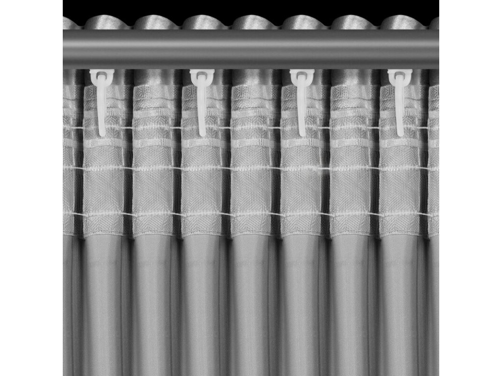 A függöny alagút funkcióval ellátott ráncolási szalaggal rendelkezik, amely lehetővé teszi a könnyű beállítást bármilyen típusú függönyrúdhoz.