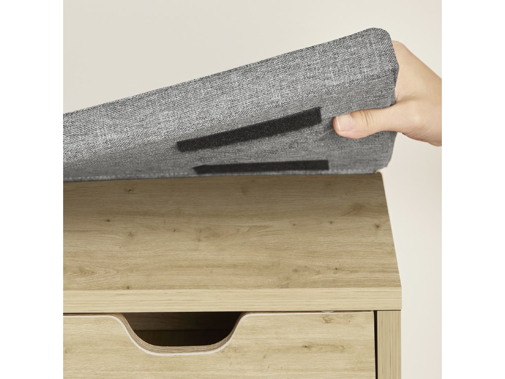 A puha ülőpárna jelentősen növeli a kényelmet cipőfelvételkor. Tépőzárral rögzíthető, így könnyen levehető és tisztítható, vagy a szekrény tépőzár nélkül is használható - klasszikus polcként. Kompakt méreteinek köszönhetően a szekrény segít fenntartani a rendet, és egyúttal helyet takarít meg a folyosón vagy a folyosón.