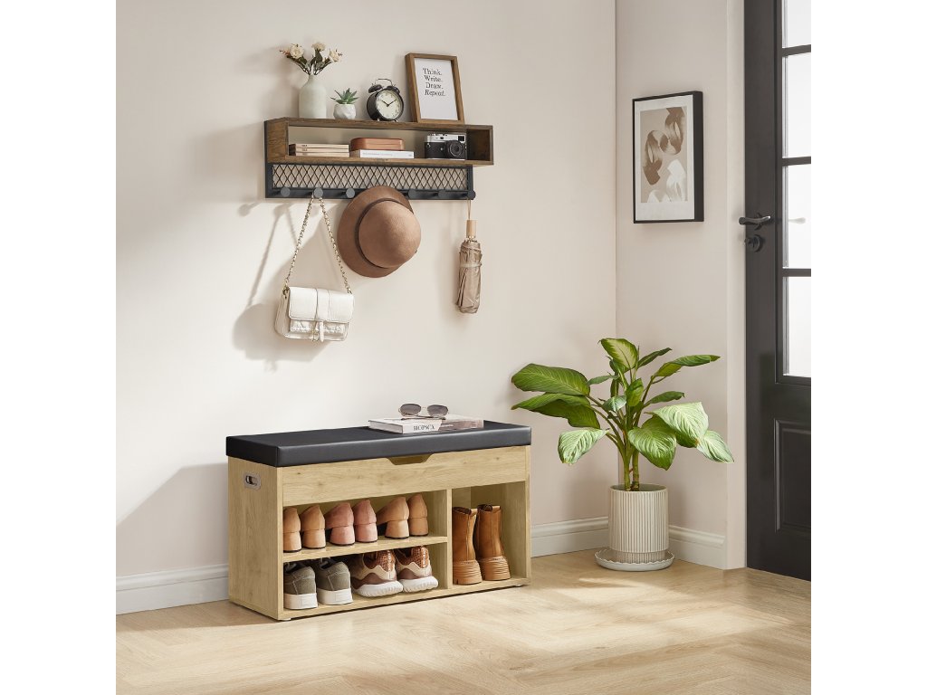 Cipőszekrény ülőpárnával - kézműves tölgy - LHS030B88