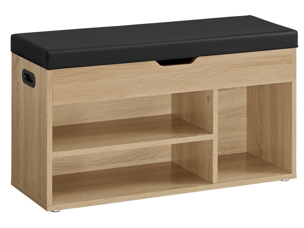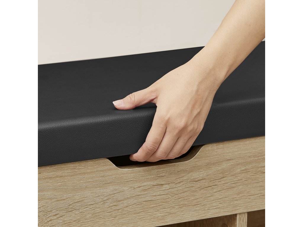 A puha, PU bőrrel borított ülőpárna nagy kényelmet biztosít cipőfelvételkor. A nyitómechanizmus könnyű hozzáférést biztosít a tárolórekeszhez, amely ideális sálak, sapkák, kesztyűk, kiegészítők vagy akár magazinok számára. Az erős és tartós zsanérok hosszú élettartamot garantálnak, míg az oldalsó fogantyúk megkönnyítik a szekrény kezelését és mozgatását.