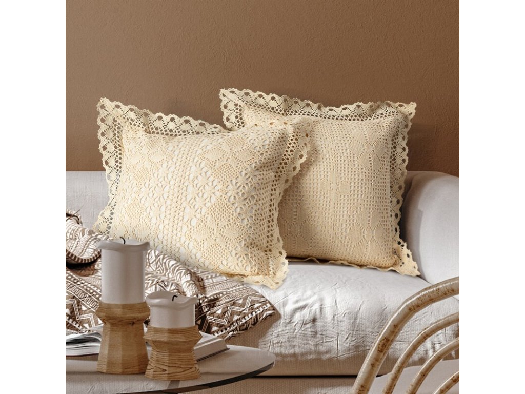 A finom csipkeminta a díszes csipkeszegéllyel kombinálva nagyon jellegzetes megjelenést kölcsönöz a párnahuzatnak, és természetes harmóniát visz a belső térbe. A rejtett cipzár kényelmes használatot biztosít.