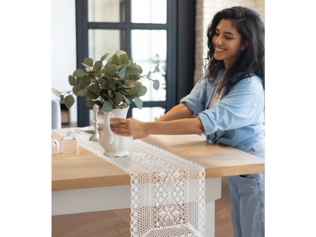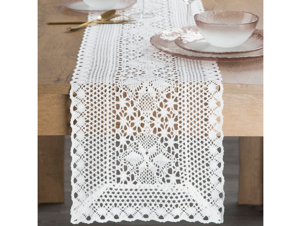 Csipkés asztali stóla MEGGY - fehér 32x140cm