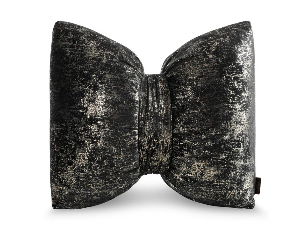 Dekoratív bársonypárna masni formájában - fekete, fényes hatással