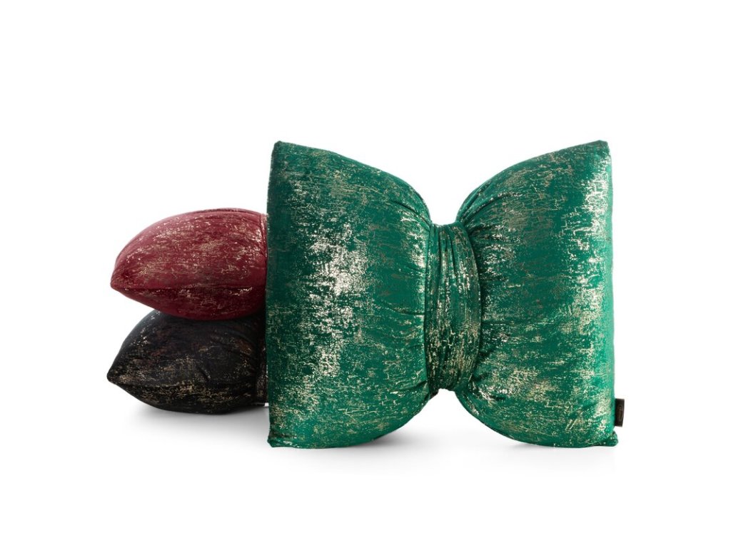 Dekoratív bársonypárna masni formájában - zöld, fényes hatással