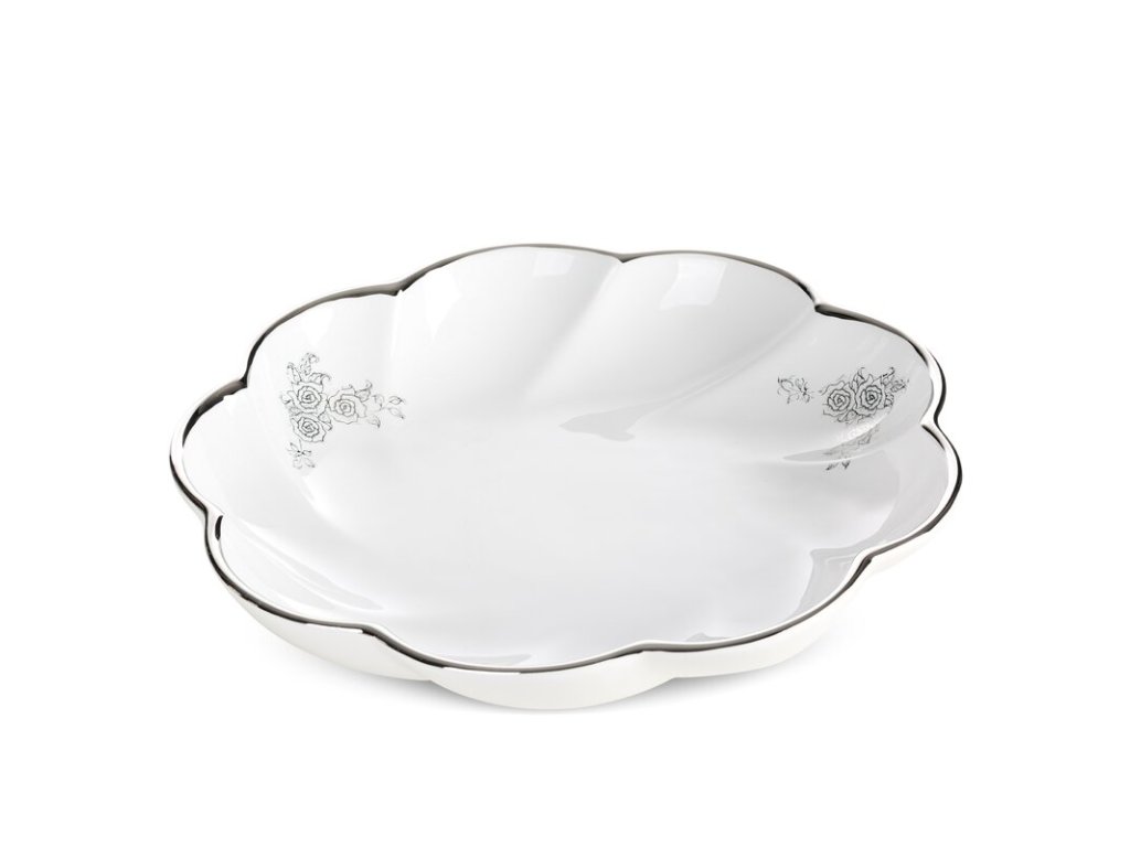 30 cm átmérőjével és 6 cm magasságával ideális gyümölcsök, édességek tálalására, vagy dekorációs elemként étkezőasztalon vagy komódon. A kerámia anyag tartósságot és könnyű tisztítást biztosít.