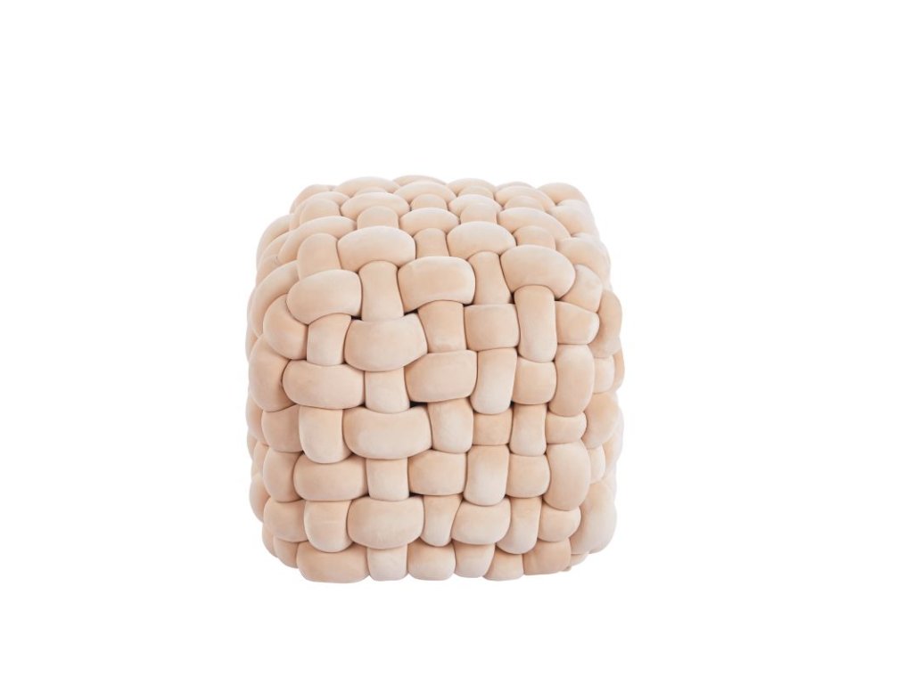 Designer szőtt, egyszemélyes, bársonyból kárpitozott szék kocka formában - bézs
