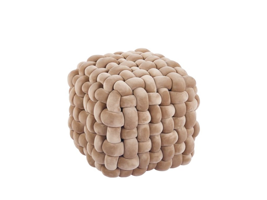 Designer szőtt, egyszemélyes bársony kárpitozású szék kocka formában - cappuccino