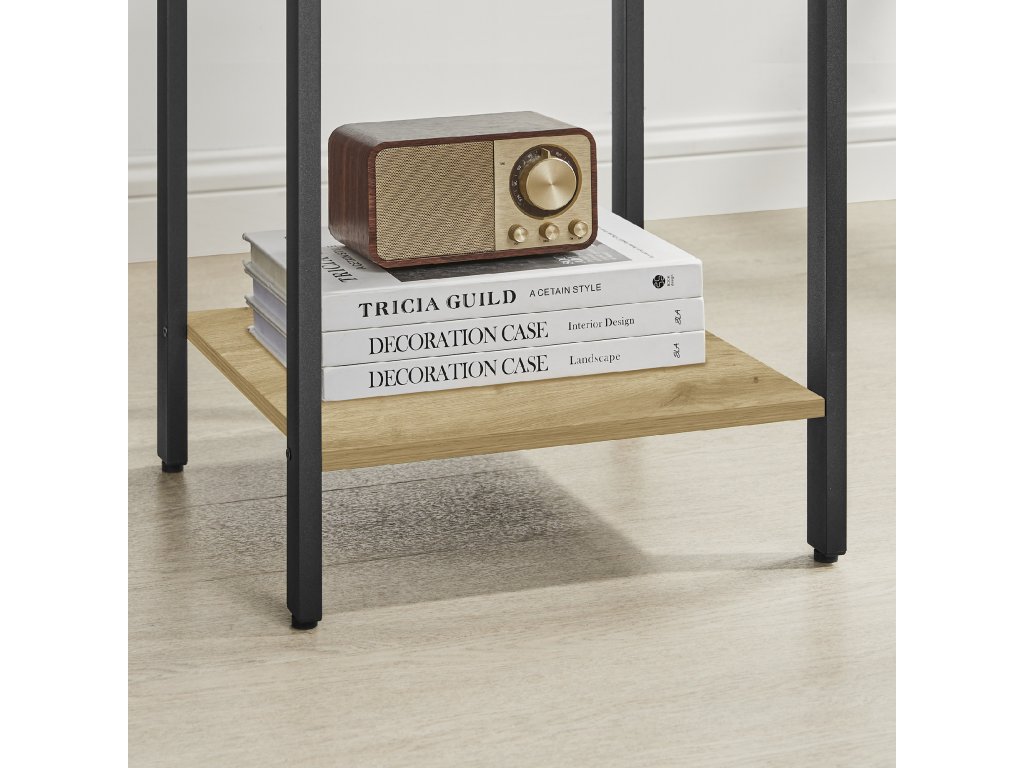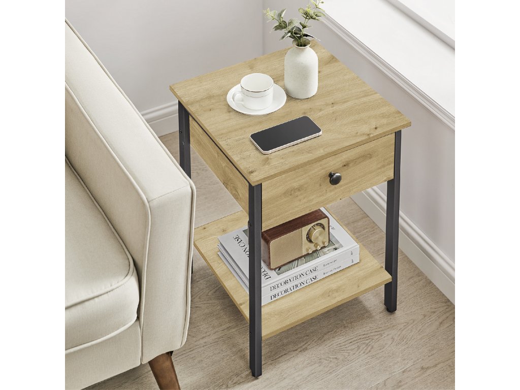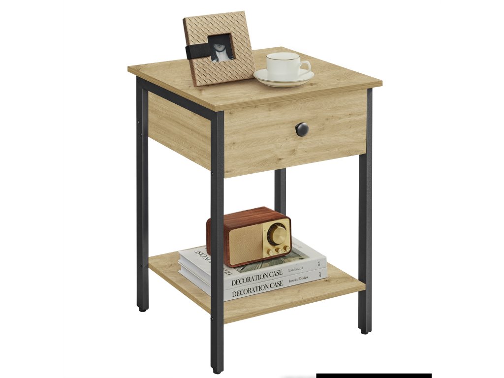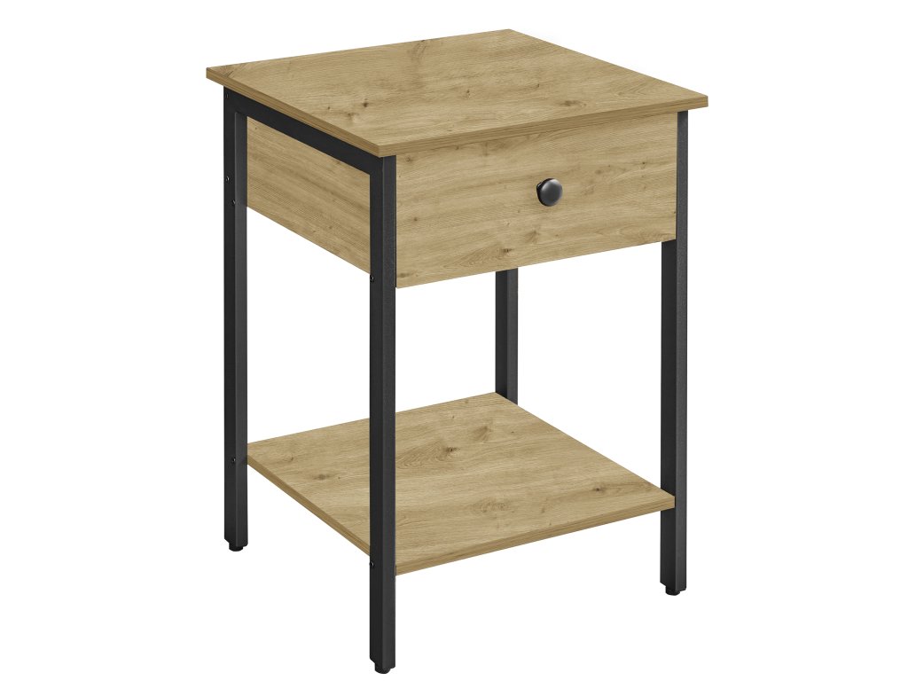 Az Artisan Oak dekorral ellátott modern éjjeliszekrény fiókkal praktikus és stílusos kiegészítője lehet a hálószobának, a nappalinak és a dolgozószobának. A meleg fadekor és a fekete fém szerkezet kombinációja időtlen loft/ipari megjelenést kölcsönöz, amely könnyedén illeszkedik mind a modern, mind a minimalista enteriőrökbe.