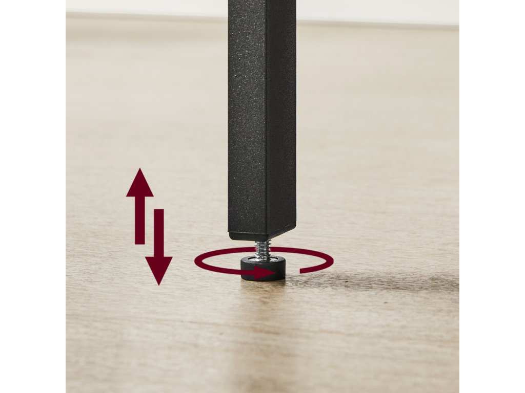 Az asztal kiváló minőségű forgácslapból és masszív acélszerkezetből készült, ami stabilitást, tartósságot és hosszú élettartamot garantál. Kompakt méreteinek köszönhetően kisebb helyiségekbe is tökéletes.
