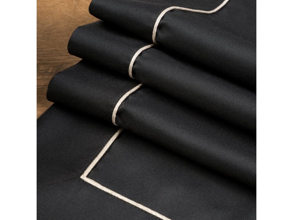 Elegáns DORITA terítő fekete színben, ezüst szegéllyel - 4 darabos szett