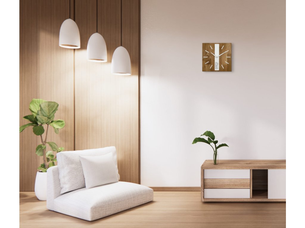 Minden óra a tölgyfa természetes szépségét ötvözi a modern dizájnnal. A tölgyfát ökológiai olajjal kezelték, ami kiemeli a szerkezetét és biztosítja a tartósságát. A díszítőelemek matt plexiüvegből készültek, ami eleganciát és könnyedséget kölcsönöz az egésznek.