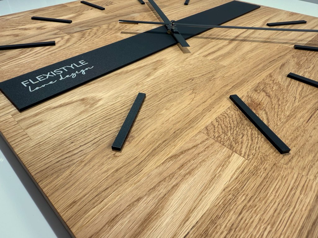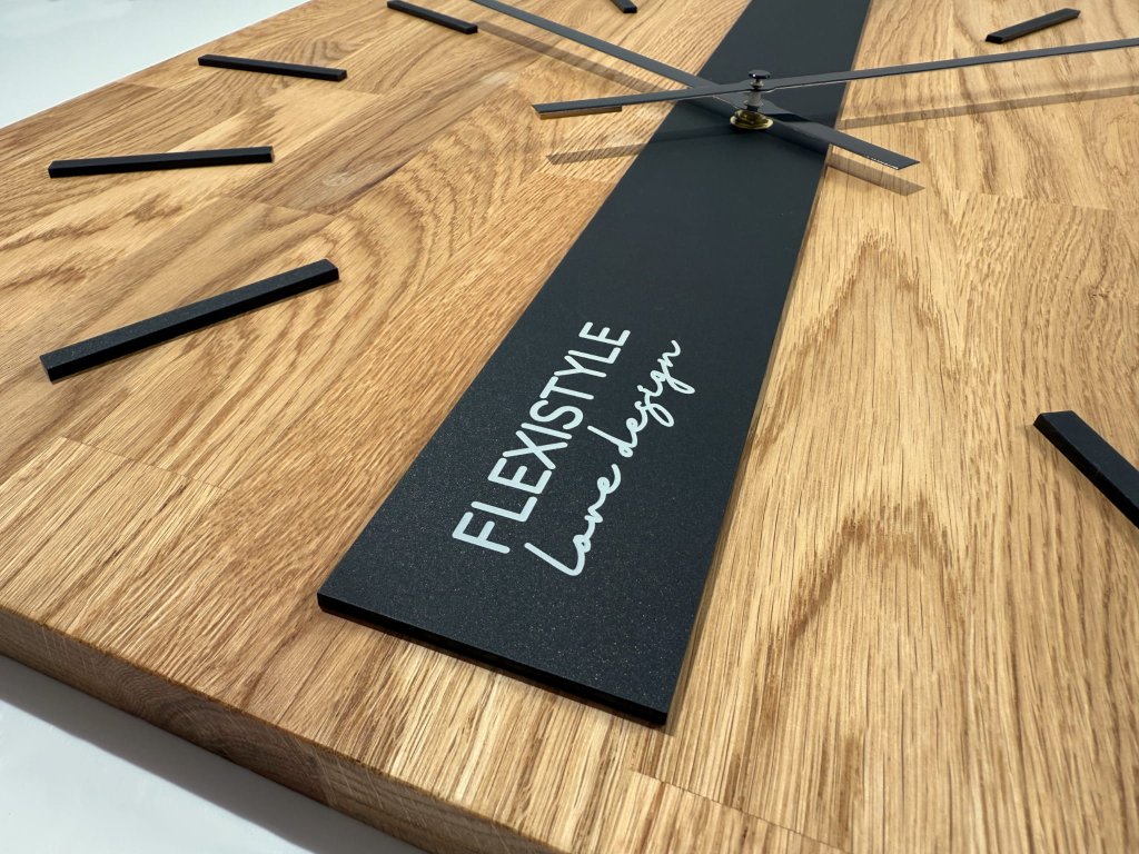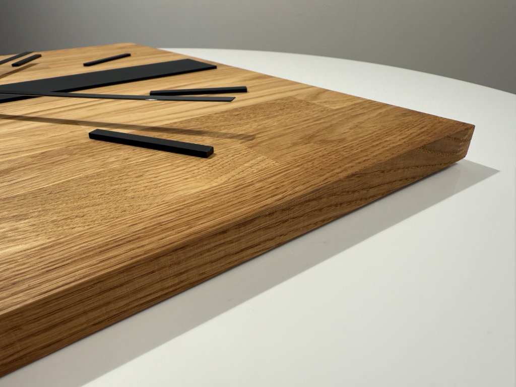 Minden óra a tölgyfa természetes szépségét ötvözi a modern dizájnnal. A tölgyfát ökológiai olajjal kezelték, ami kiemeli a szerkezetét és biztosítja a tartósságát. A díszítőelemek matt plexiüvegből készültek, ami eleganciát és könnyedséget kölcsönöz az egésznek.