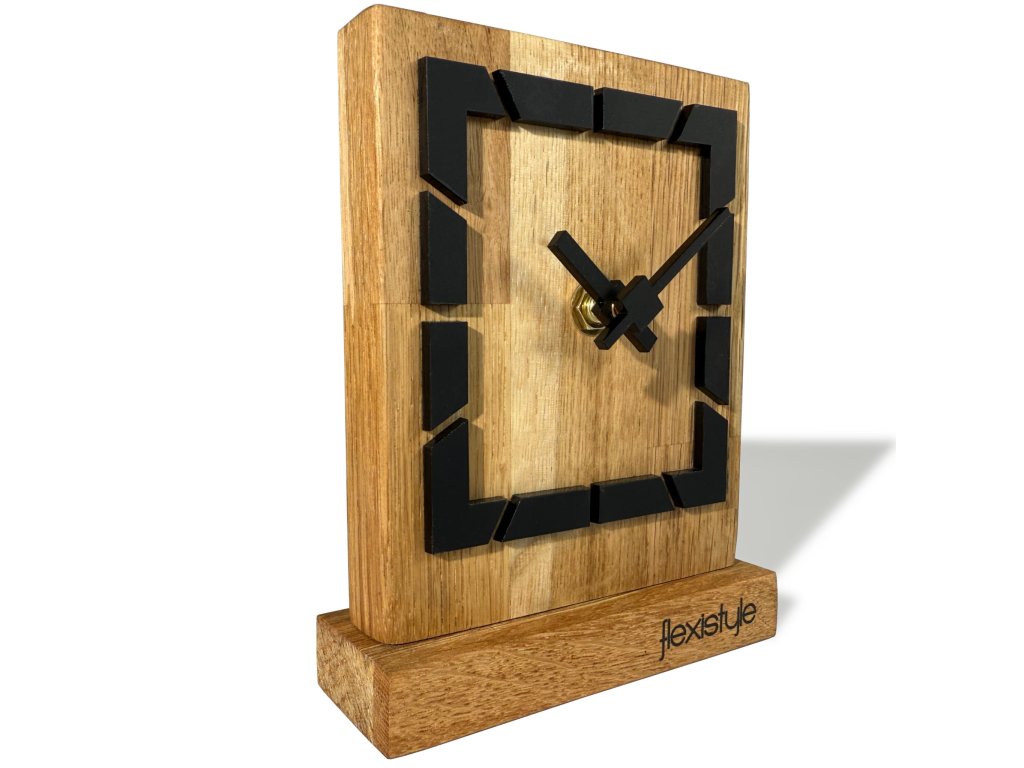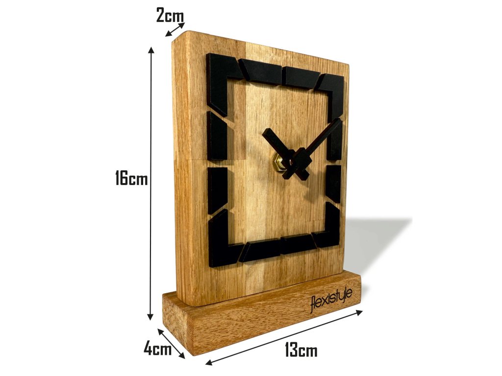 Fa asztali óra Négyzet alakú tölgyfa - fekete