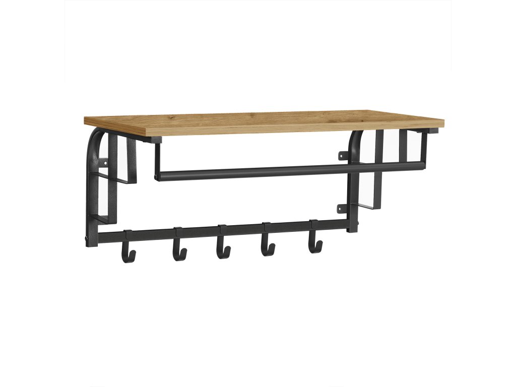 Fali polc akasztókkal - kézműves tölgyfa - LCR012B88