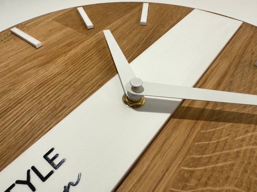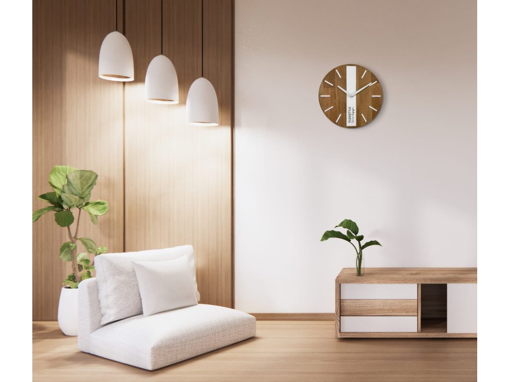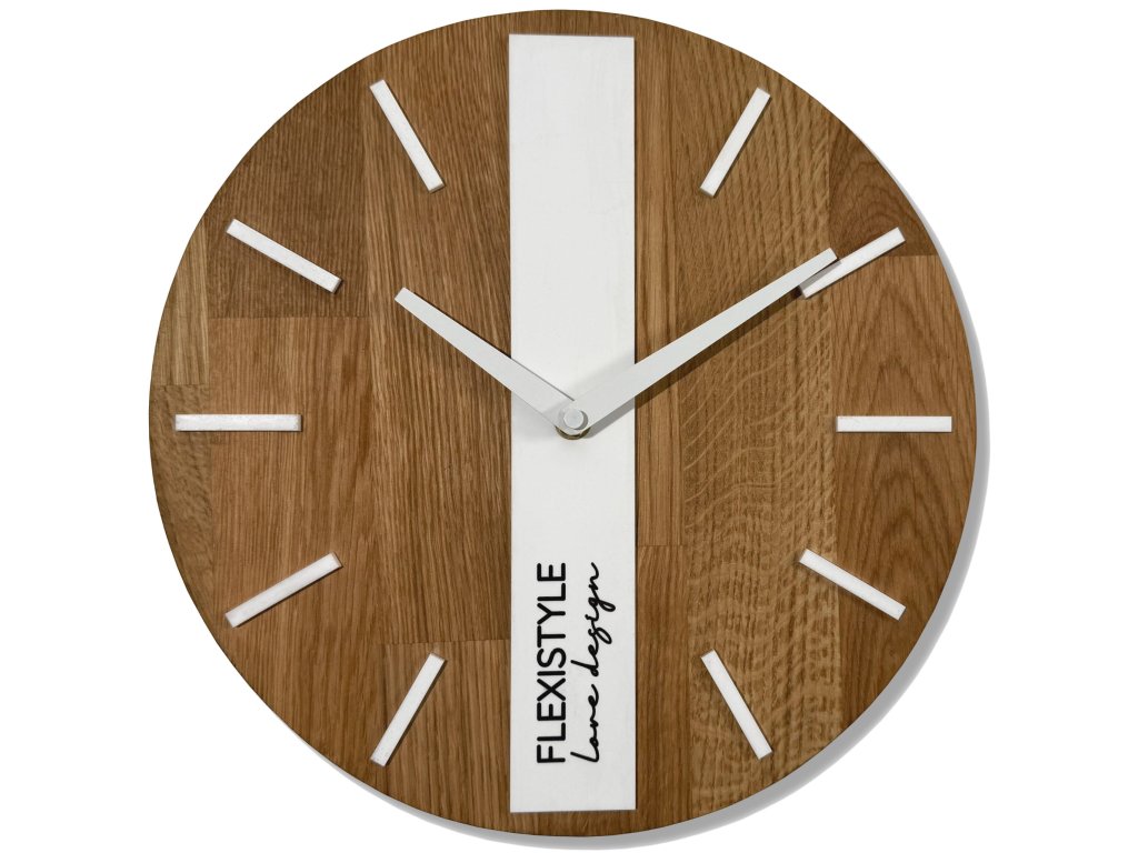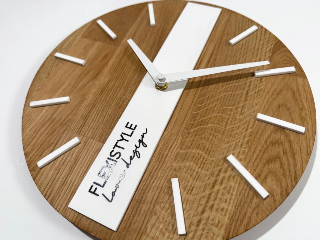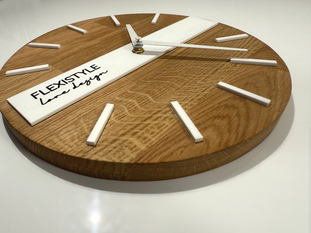 Minden óra a tölgyfa természetes szépségét ötvözi a modern dizájnnal. A tölgyfát ökológiai olajjal kezelték, ami kiemeli a szerkezetét és biztosítja a tartósságát. A díszítőelemek matt plexiüvegből készültek, ami eleganciát és könnyedséget kölcsönöz az egésznek.