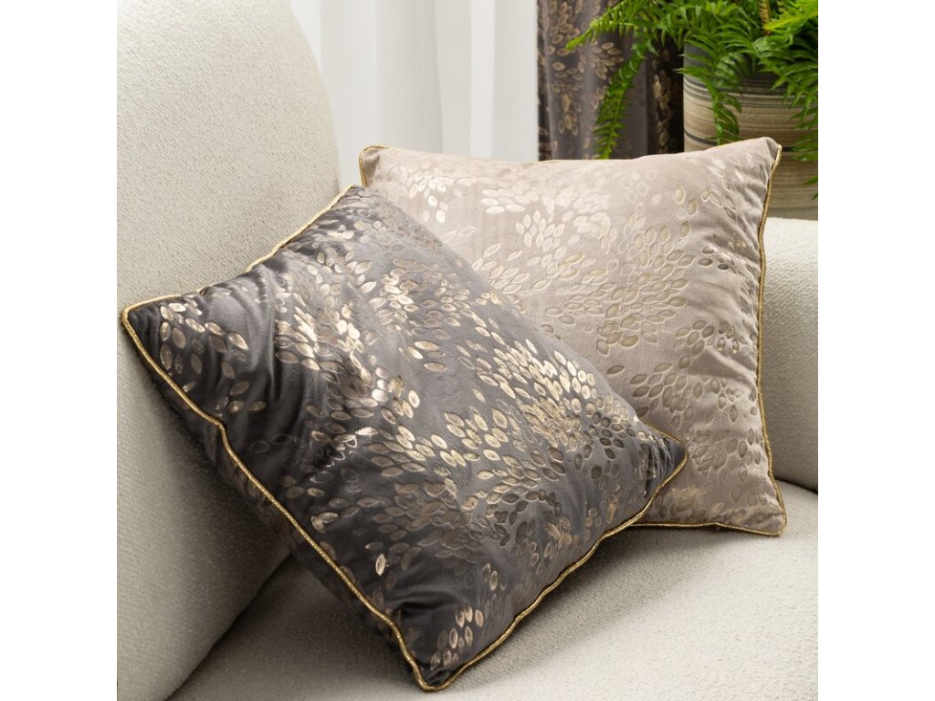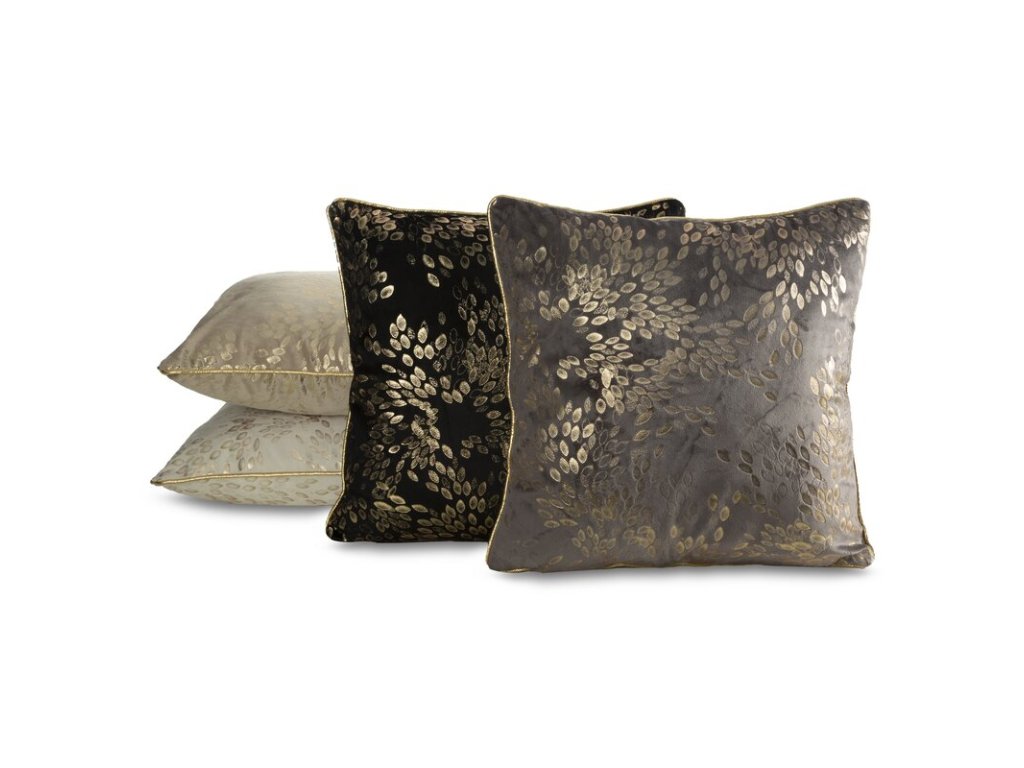 A FELIS dekoratív párnahuzat puha bársonyból készült, és fényes levélmintával díszített, amely elegáns megjelenést kölcsönöz neki.