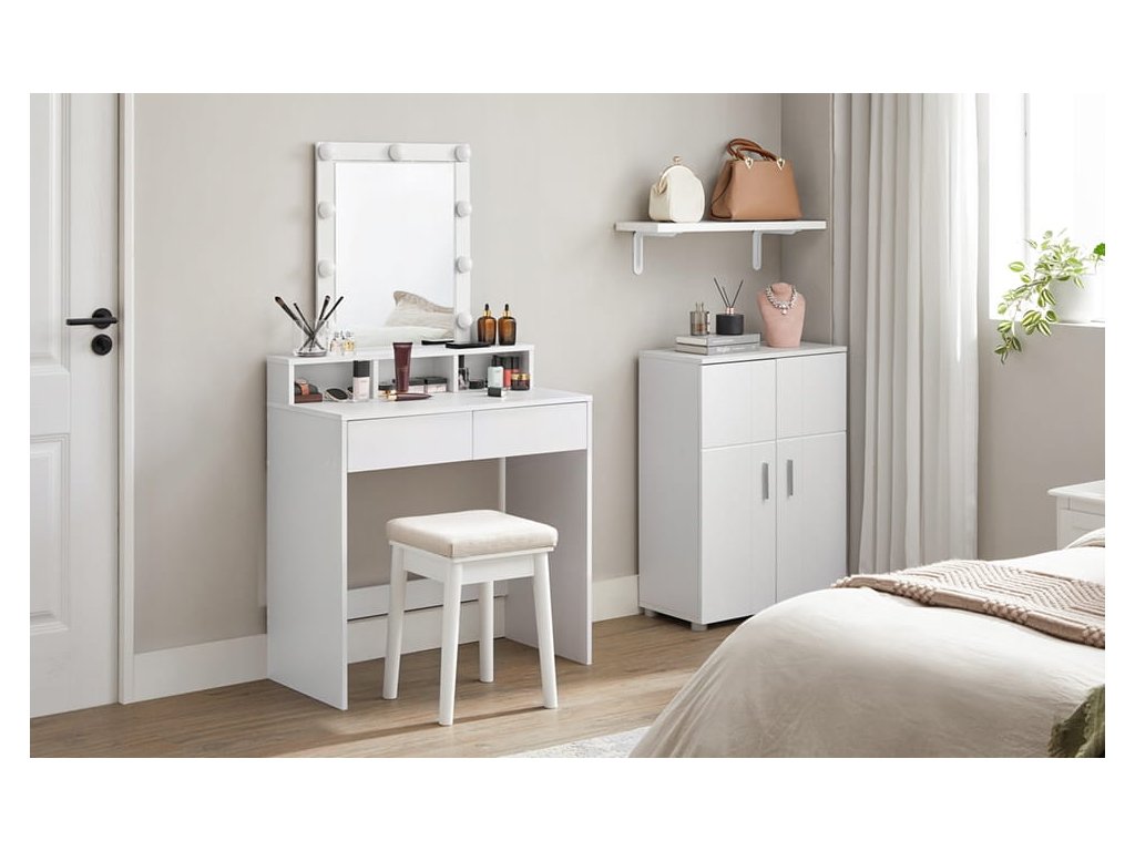 Széles fehér kialakításának köszönhetően tökéletesen illik bármilyen hálószobába, gardróbba vagy lányszobába.