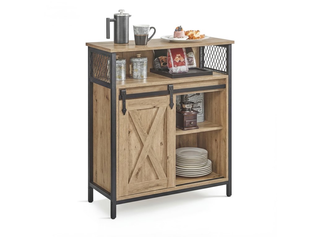 Ez a modern , loft stílusú, tolóajtós komód ideális megoldás olyan enteriőrökbe, amelyek az ipari jelleget a funkcionalitással ötvözik. Az Artisan Oak dekor és a fekete fém elemek kombinációja időtlen megjelenést kölcsönöz, amely tökéletesen illik a nappaliba, az előszobába, a dolgozószobába és a hálószobába is.