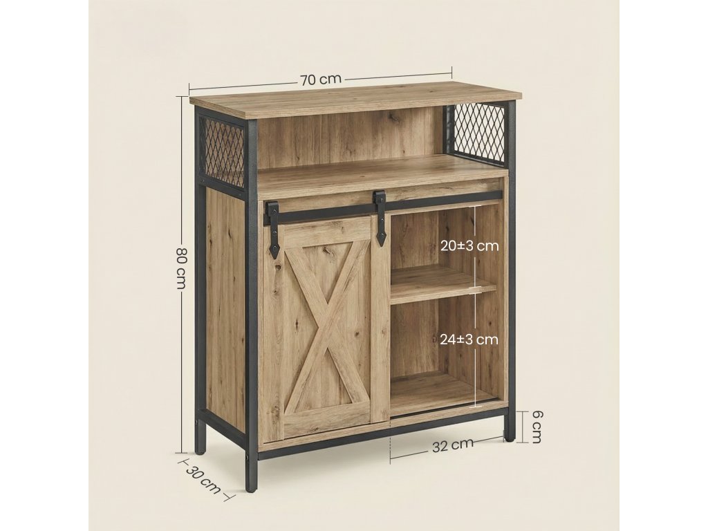 Méretek: 70 × 30 × 80 cm (szélesség × mélység × magasság)