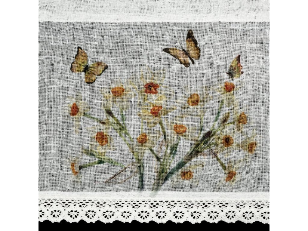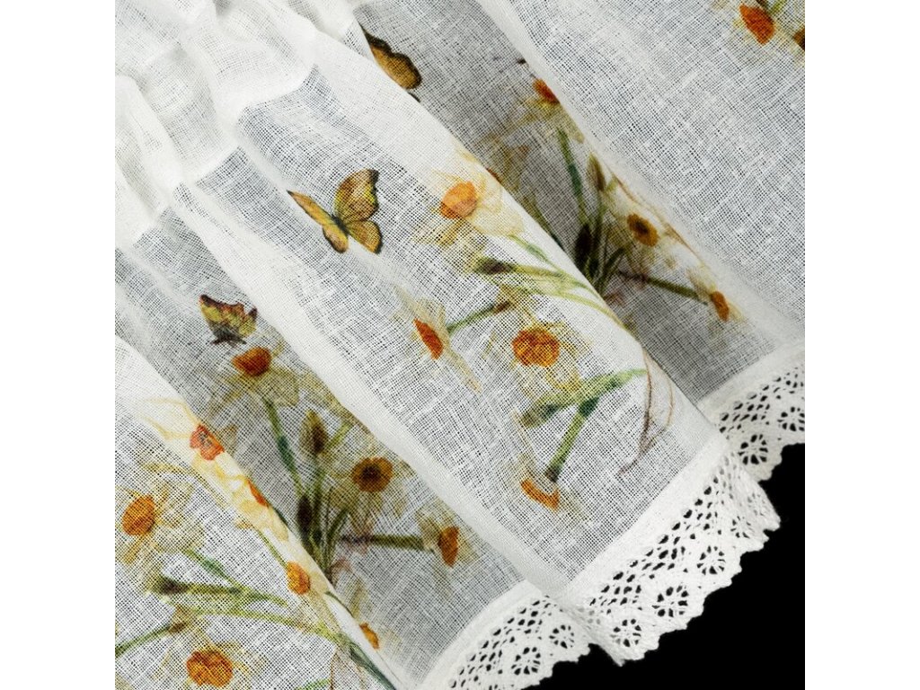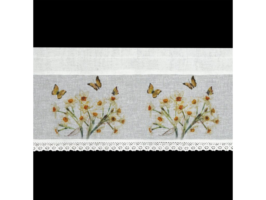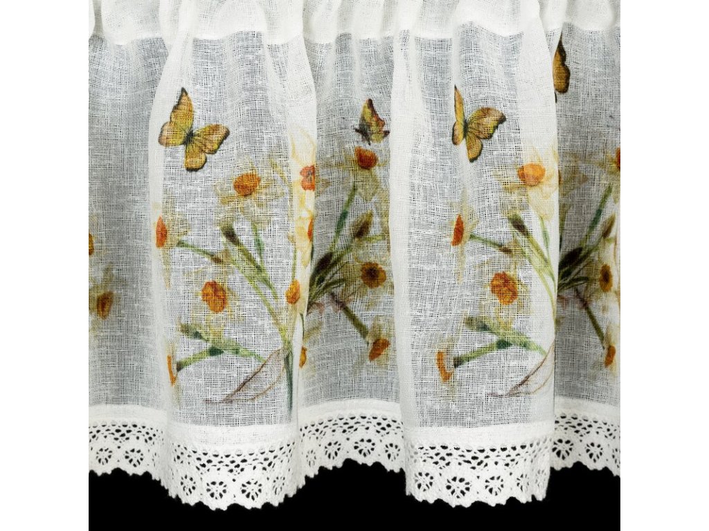 FLORA konyhafüggöny nárcisz mintával és csipkével 150x30cm