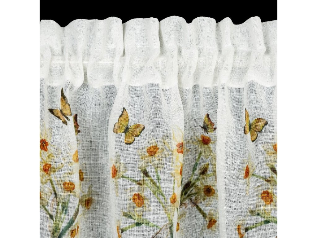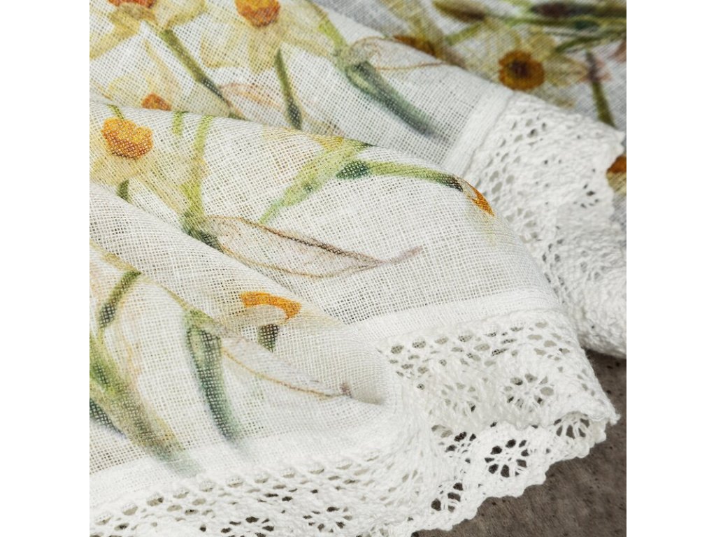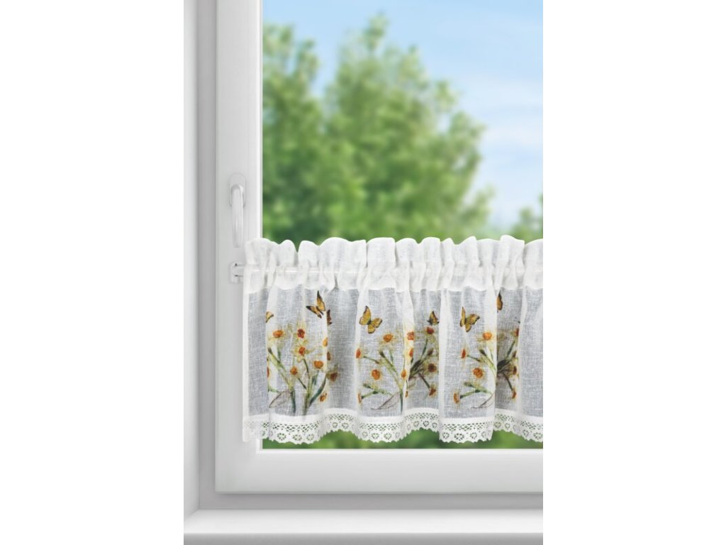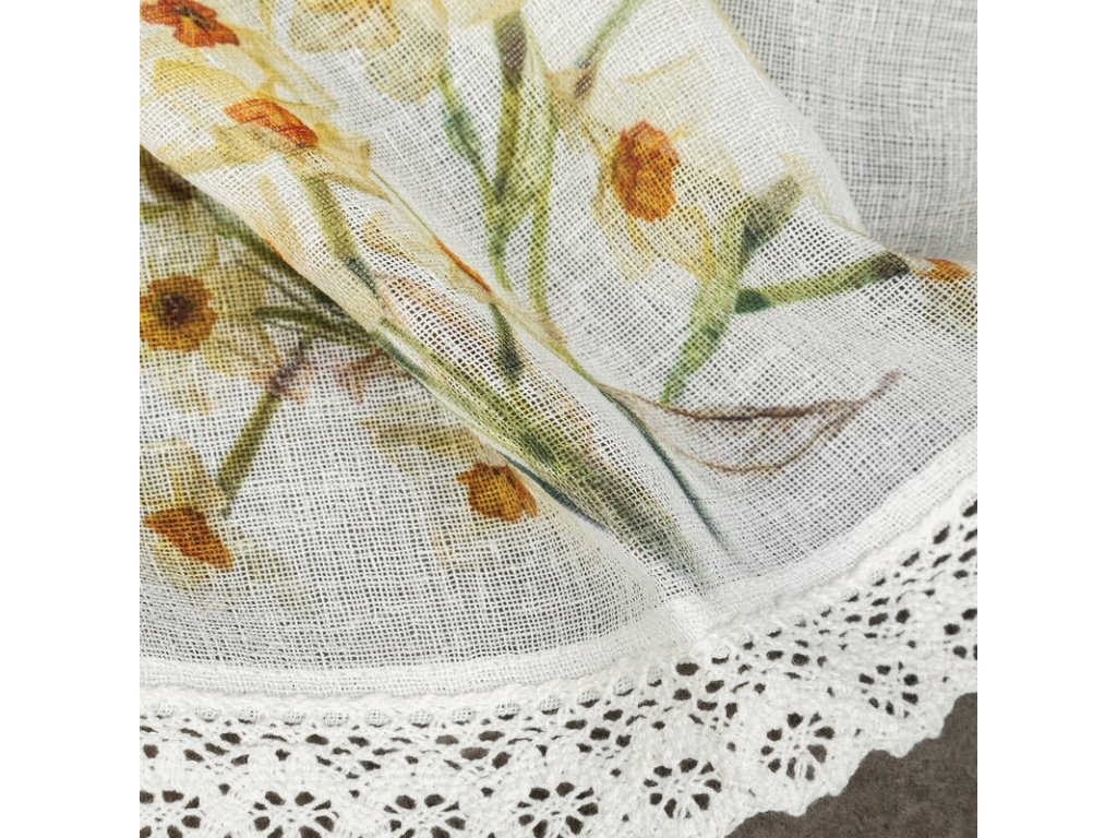 FLORA konyhafüggöny nárcisz mintával és csipkével 150x30cm