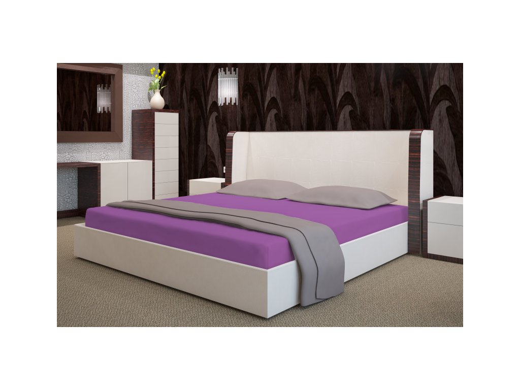 Frottír lepedő elasztikus szilva színű PRZF-27
