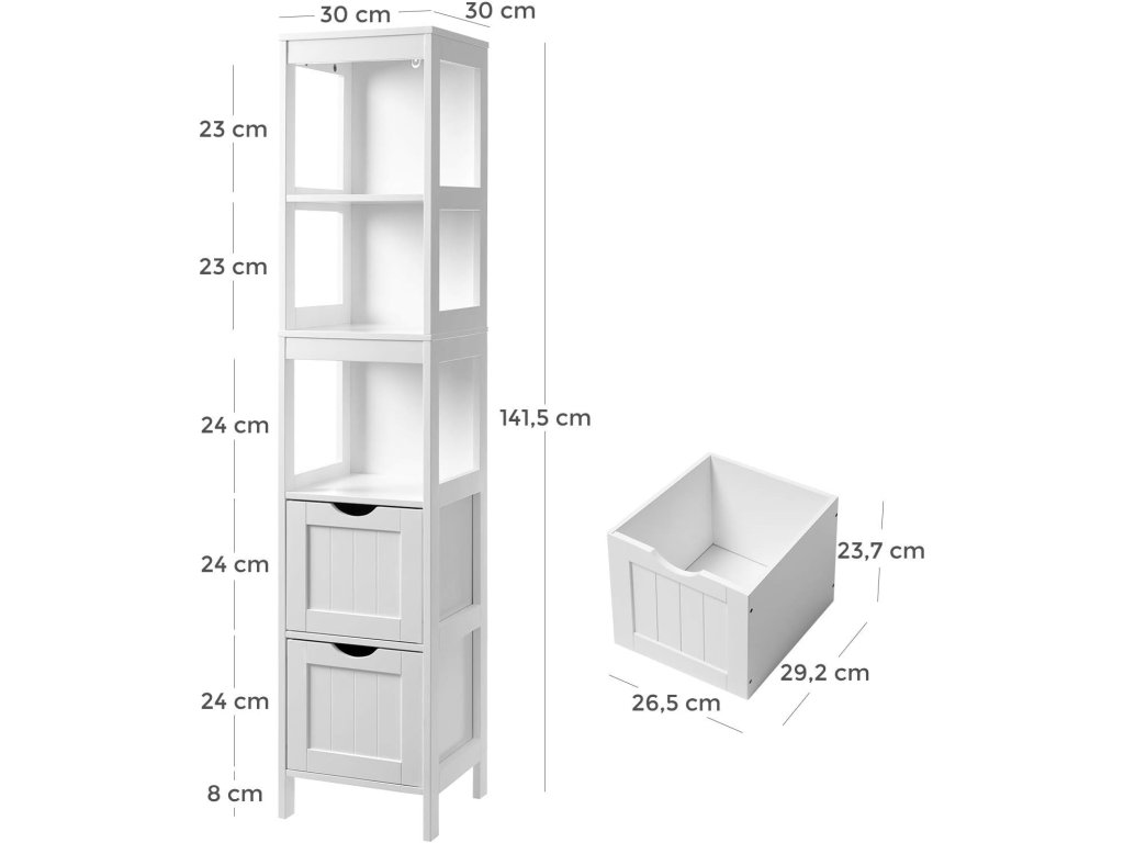 Szekrény méretei: 30 × 30 × 141,5 cm (szélesség × mélység × magasság)