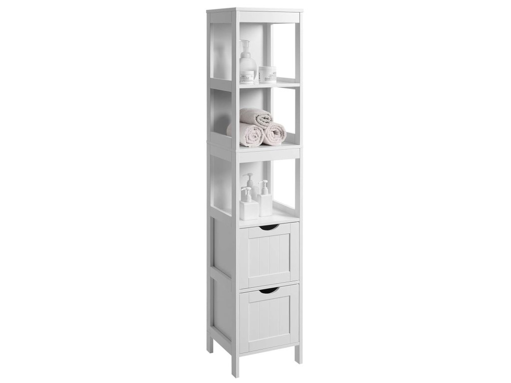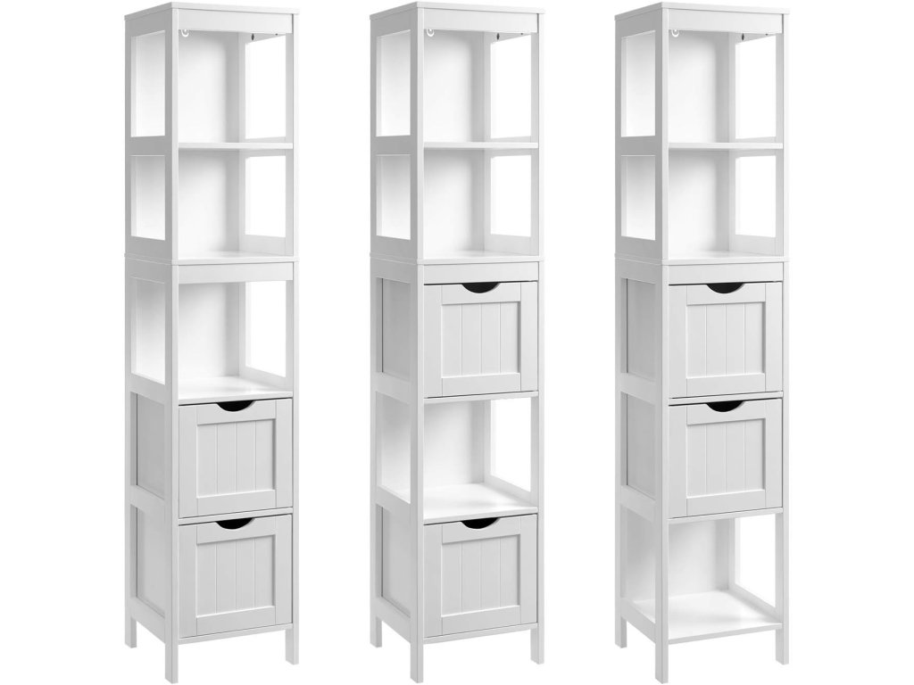 A modern, keskeny, fehér fürdőszobaszekrény ideális megoldás a hely hatékony kihasználására még kisebb helyiségekben is. Karcsú formájának köszönhetően tökéletes fürdőszobába, mosókonyhába, konyhába, hálószobába vagy előszobába, ahol praktikus tárolóhelyet biztosít anélkül, hogy feleslegesen elzsúfolná a belső teret.